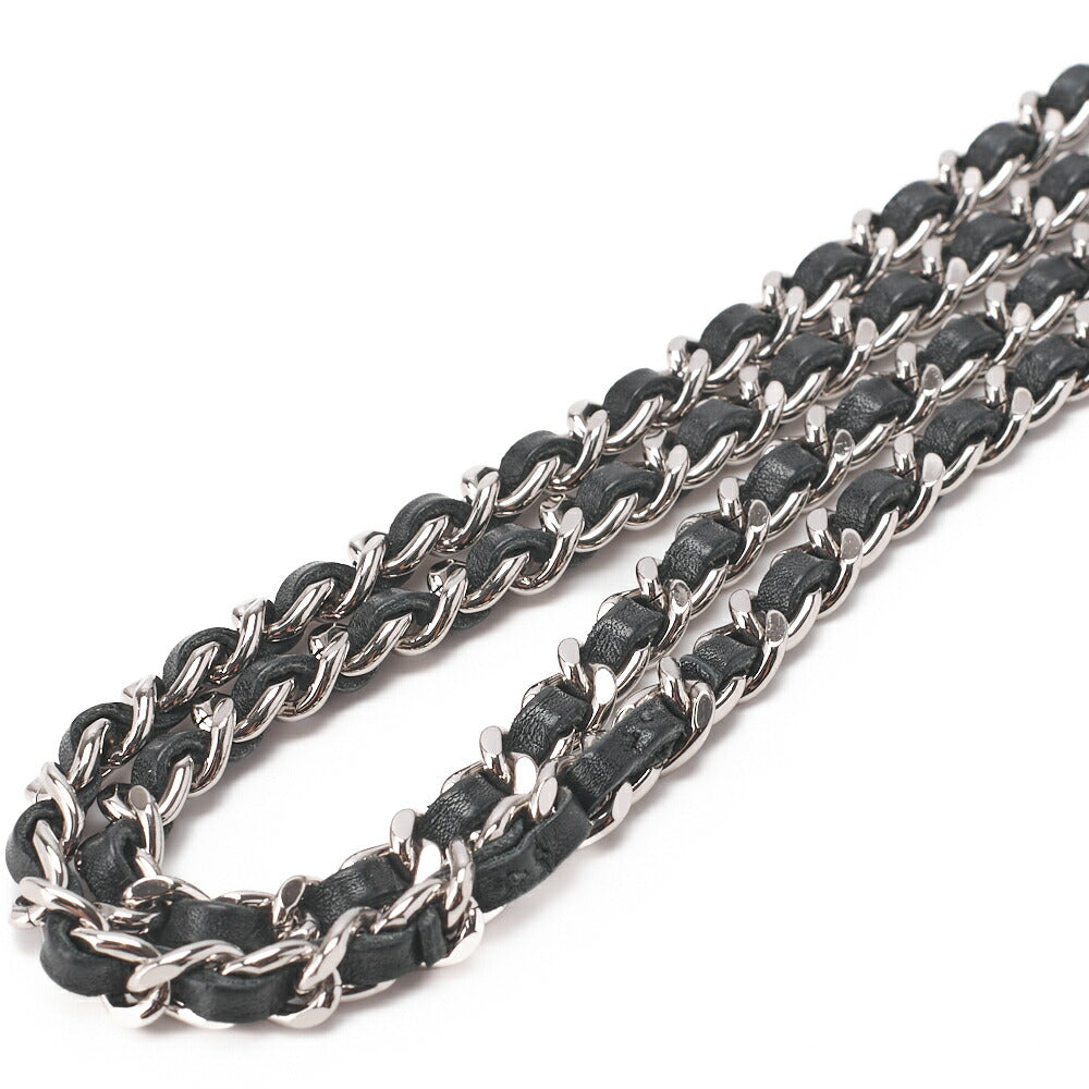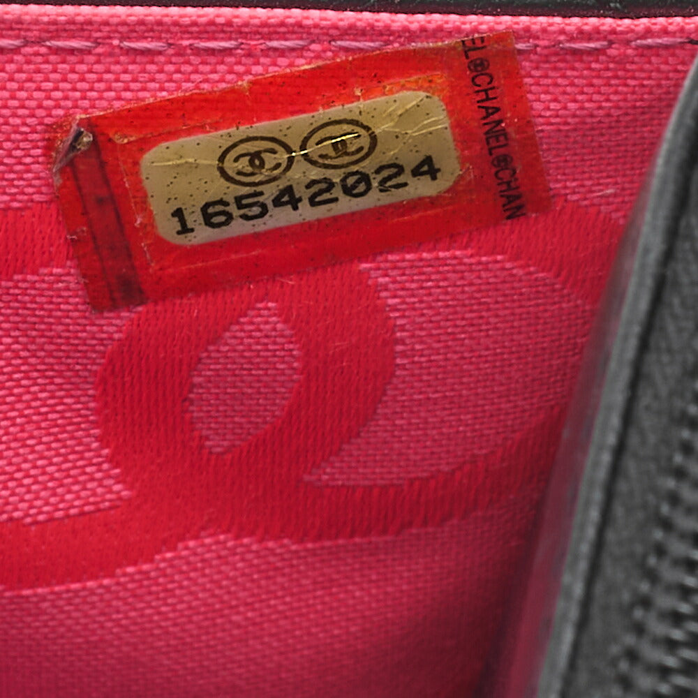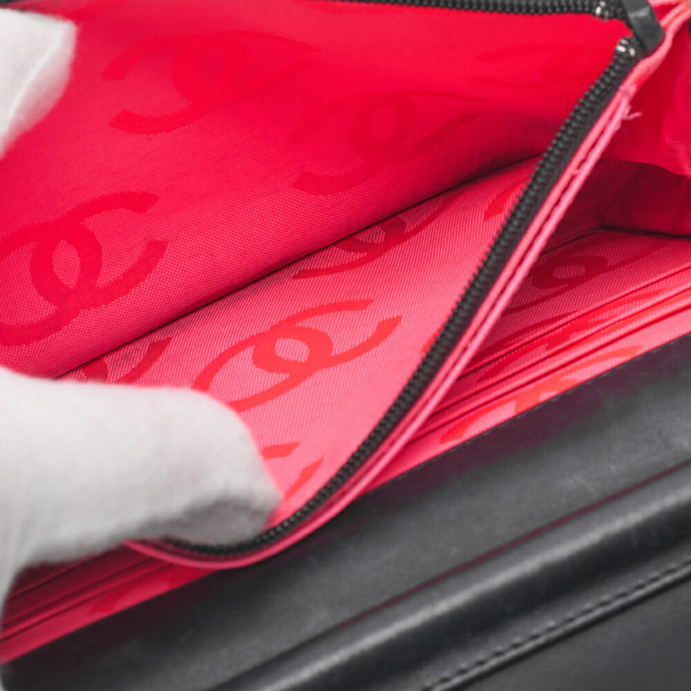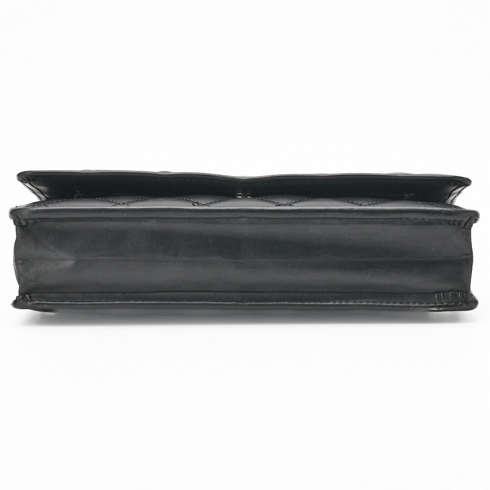 Pre-Owned Chain Wallet, Cambon Line, Folding, Calfskin, Black, Silver-Tone Hardware, Pre-Owned