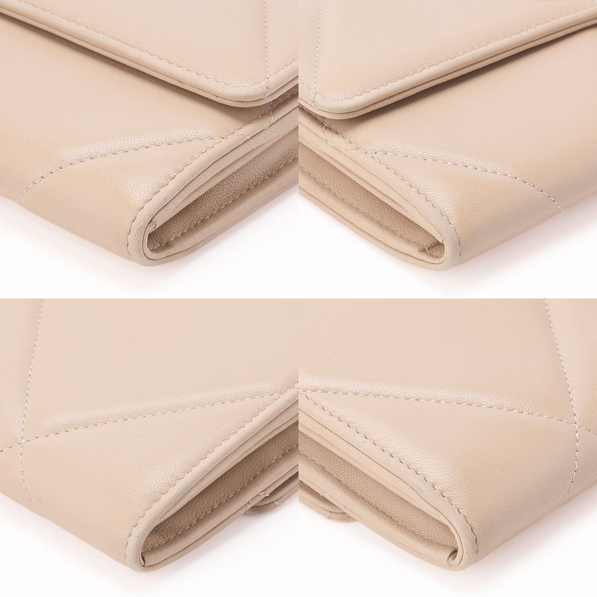 Pre-Owned 19 Bi-fold Long Wallet Matelasse Lambskin Beige Gold-Tone Hardware Pre-Owned