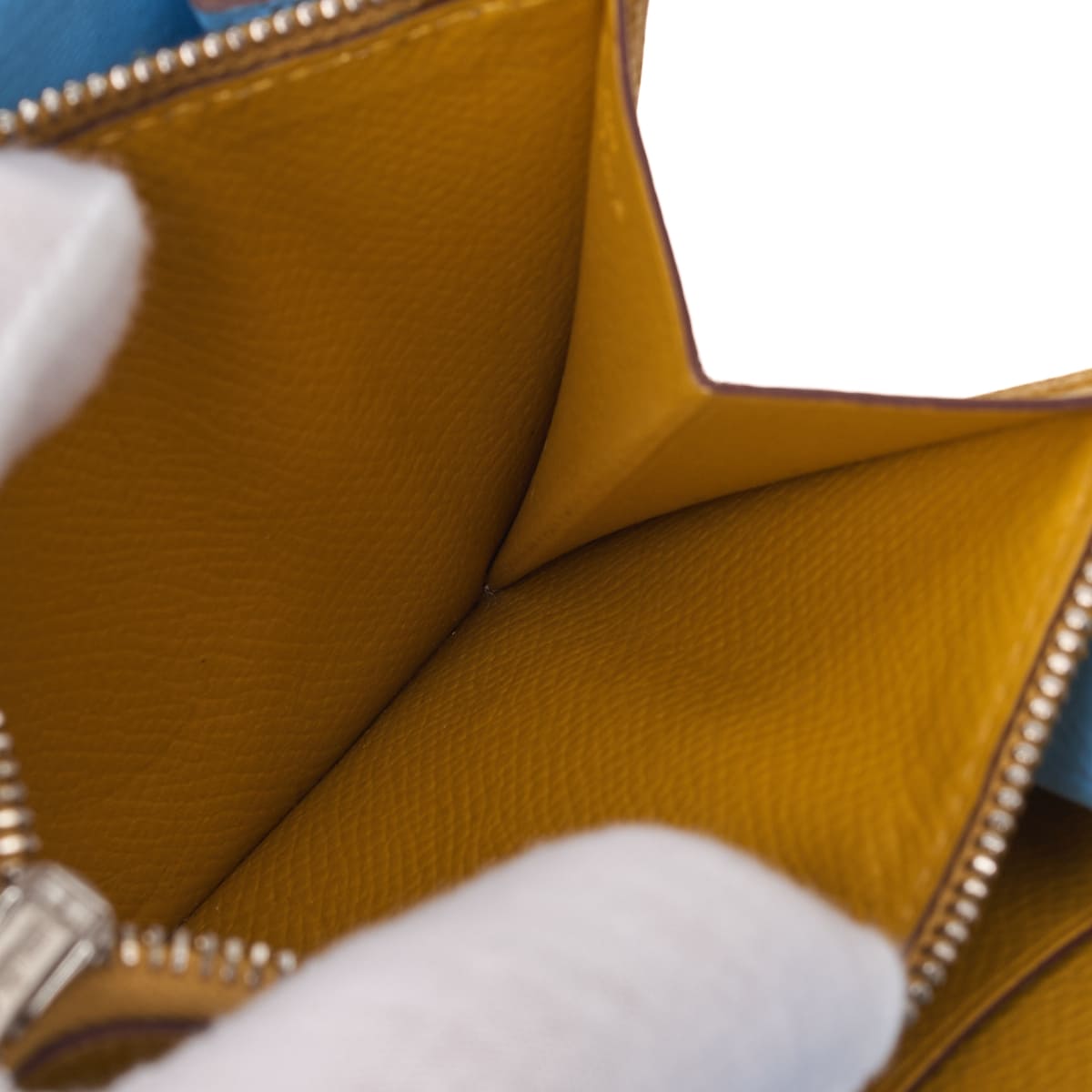 Featuring a captivating Jaune dor and Blue Atoll color combination, this wallet is sure to turn heads wherever you go. The silver metal fittings add a touch of sophistication, ensuring that this wallet complements any outfit, from casual to formal.