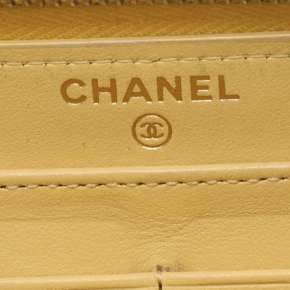 Elevate your accessory game with the CHANEL Matelasse Round Long Wallet crafted from luxurious Caviar Skin in a stunning Yellow shade adorned with exquisite Gold Fittings. This iconic women's wallet combines style and functionality, making it a perfect addition for the modern woman.