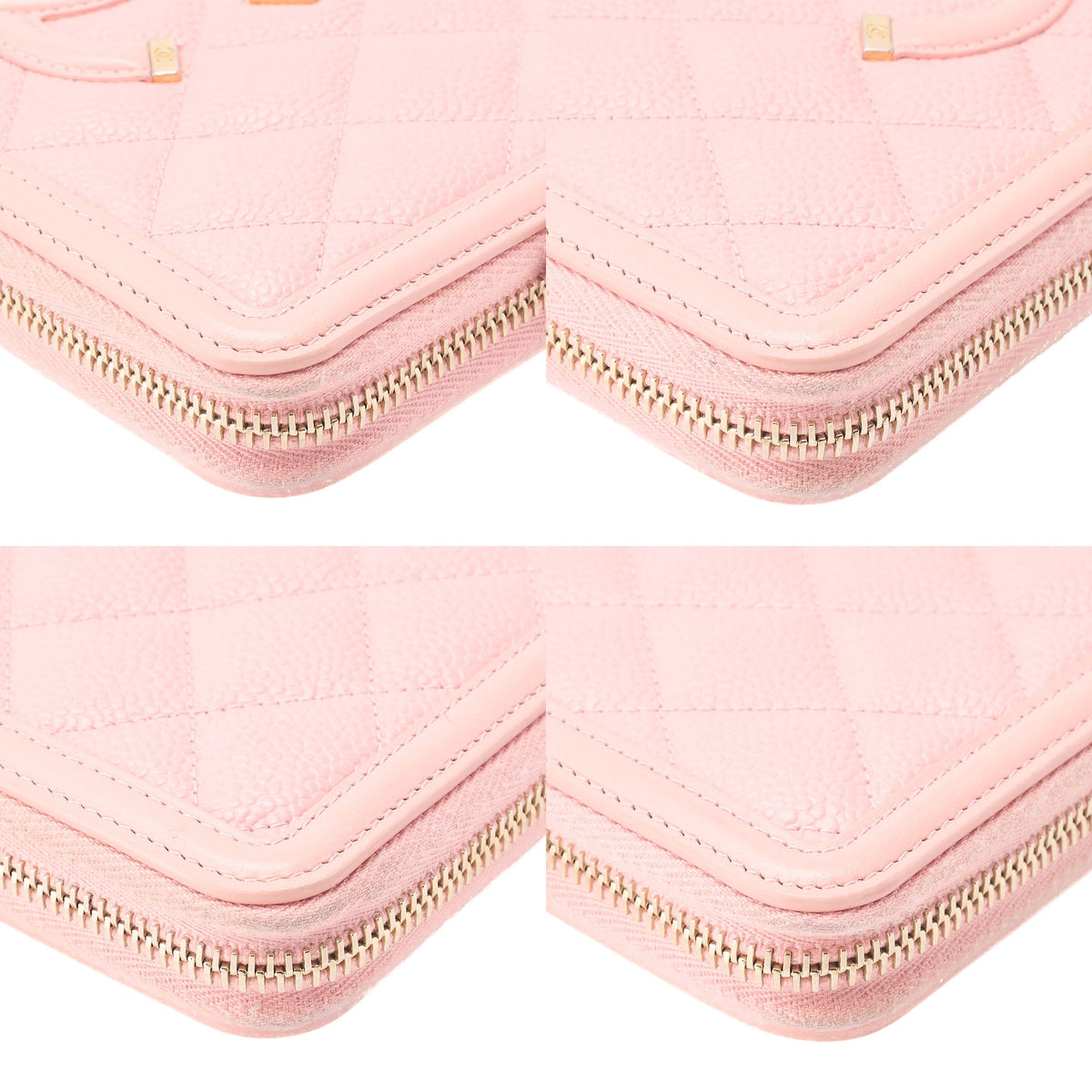 Pre-Owned Long Wallet, Matelasse CC Filigree, Caviar Skin, Pink, Gold-Tone Hardware, Pre-Owned