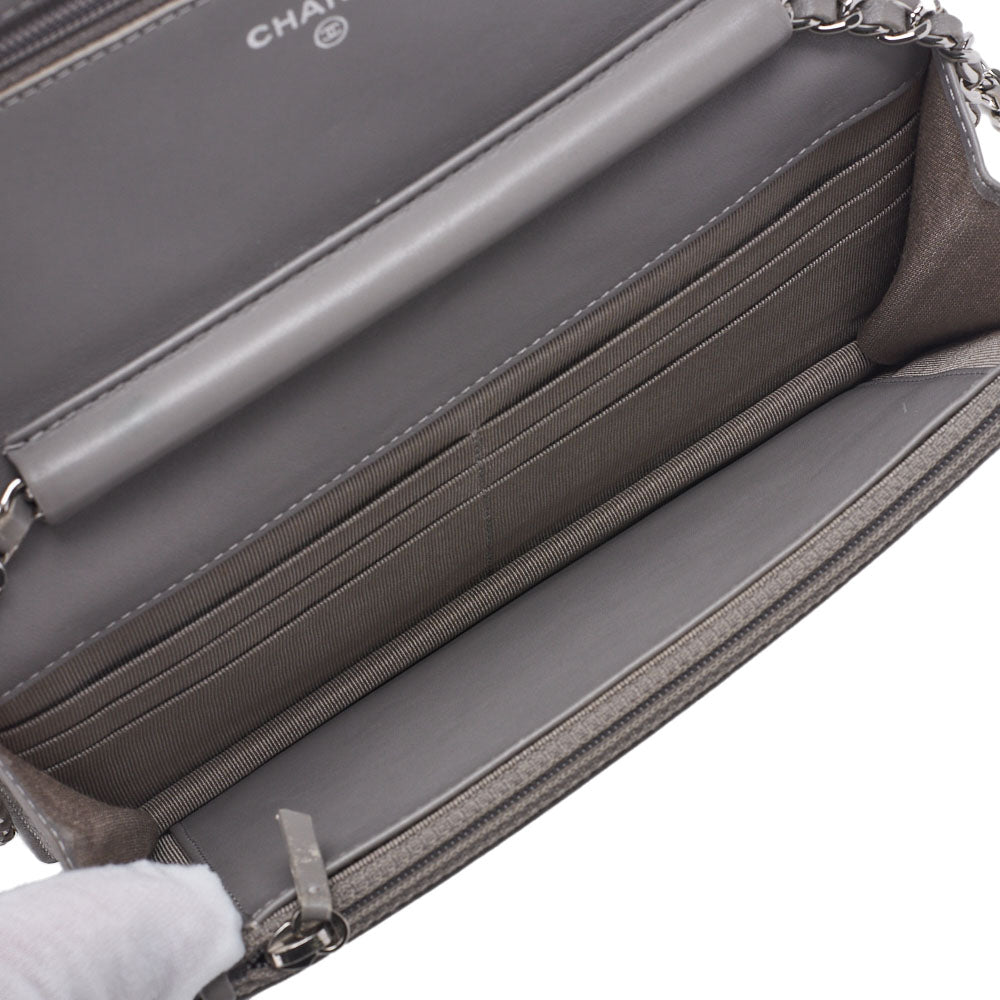 Discover the timeless elegance of the CHANEL Matelasse Chain Wallet Enamel Gold (Silver Fittings), a luxurious accessory that redefines sophistication. Crafted with meticulous attention to detail, this folding wallet elegantly combines functionality with classic style, making it an essential addition to any woman's wardrobe.