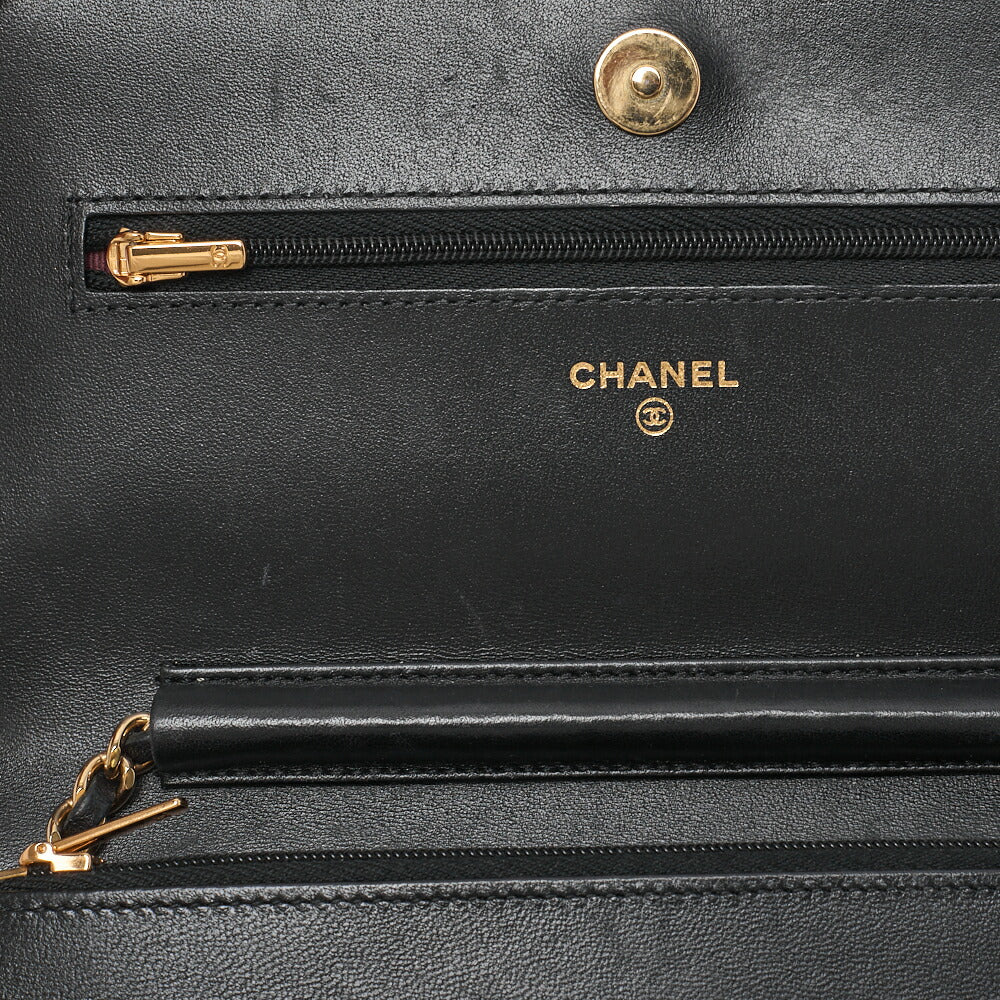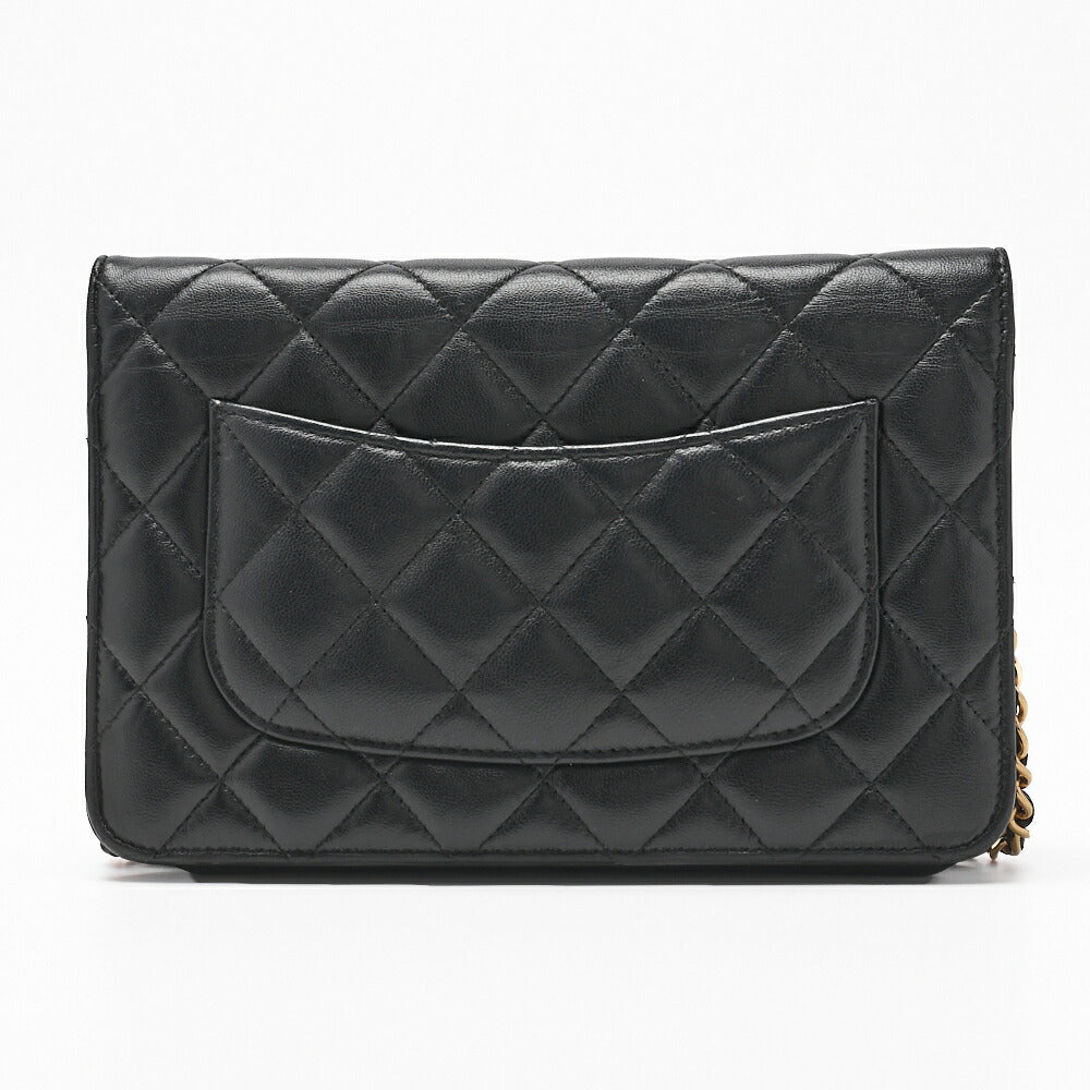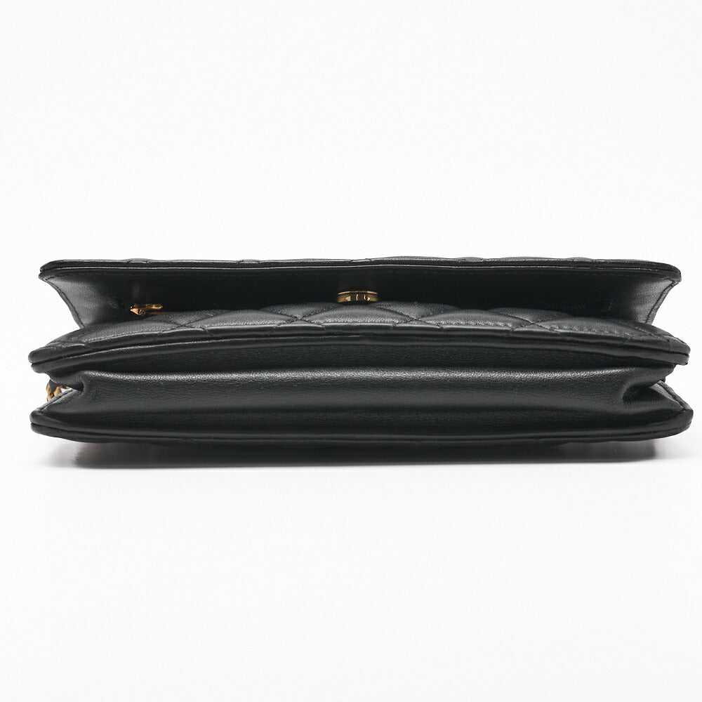 Pre-Owned Chain Wallet Matelasse Lambskin Black Gold-Tone Hardware Pre-Owned