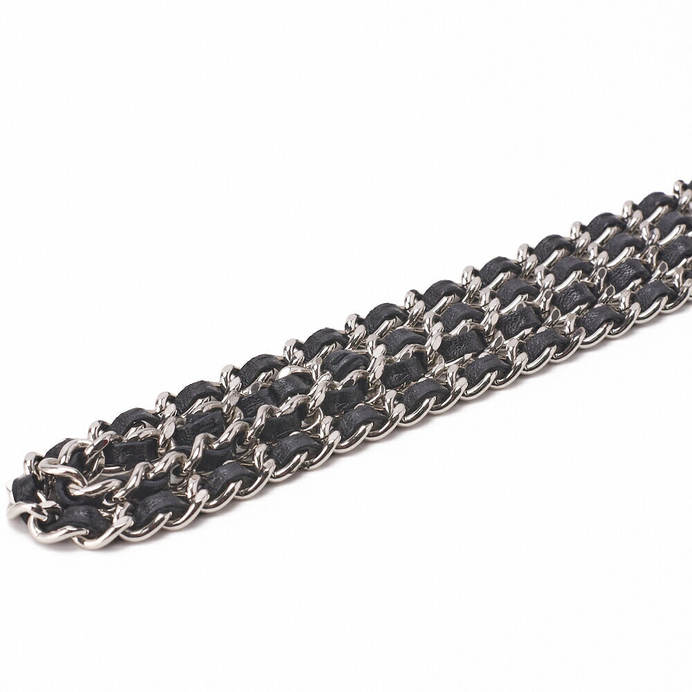 Pre-Owned Chain Wallet Matelasse Lambskin Black Silver-Tone Hardware Pre-Owned