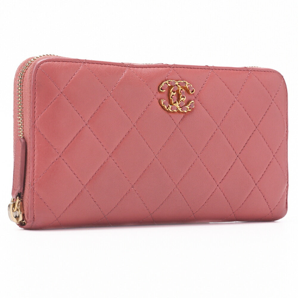 Introducing the stunning CHANEL Matelasse Chanel 19 Round Long Wallet crafted from luxurious lambskin in a delightful pink shade with eye-catching gold hardware. This exquisite women's wallet purse is an elegant blend of style and functionality, making it a must-have accessory for any fashion-forward individual.