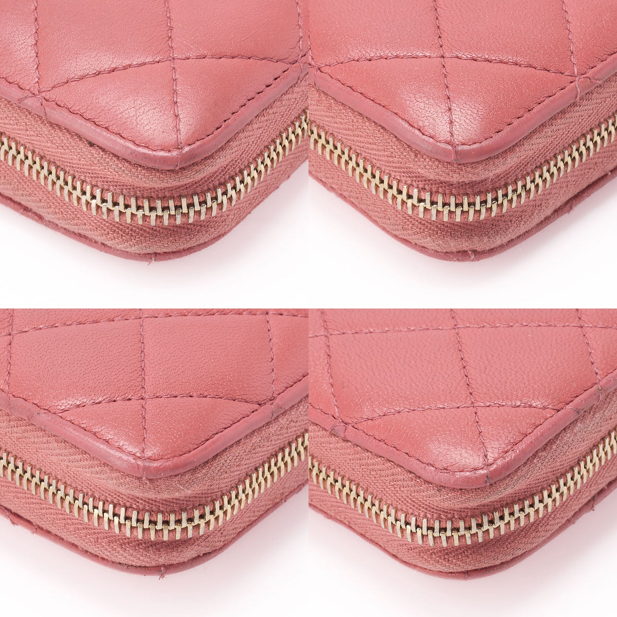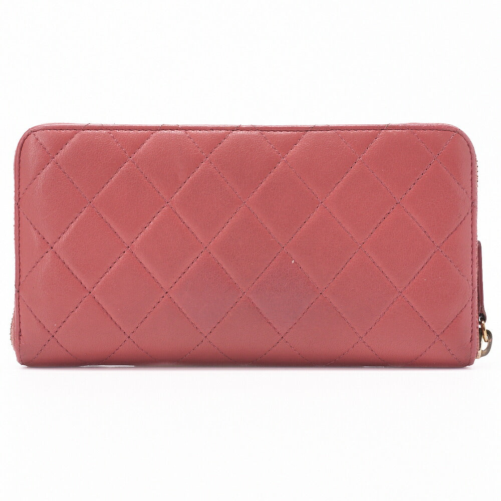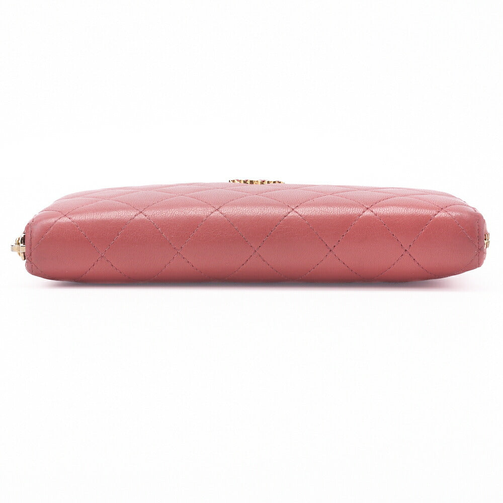 Pre-Owned Wallet, Matelasse, Lambskin, Pink, Gold-Tone Hardware, Pre-Owned