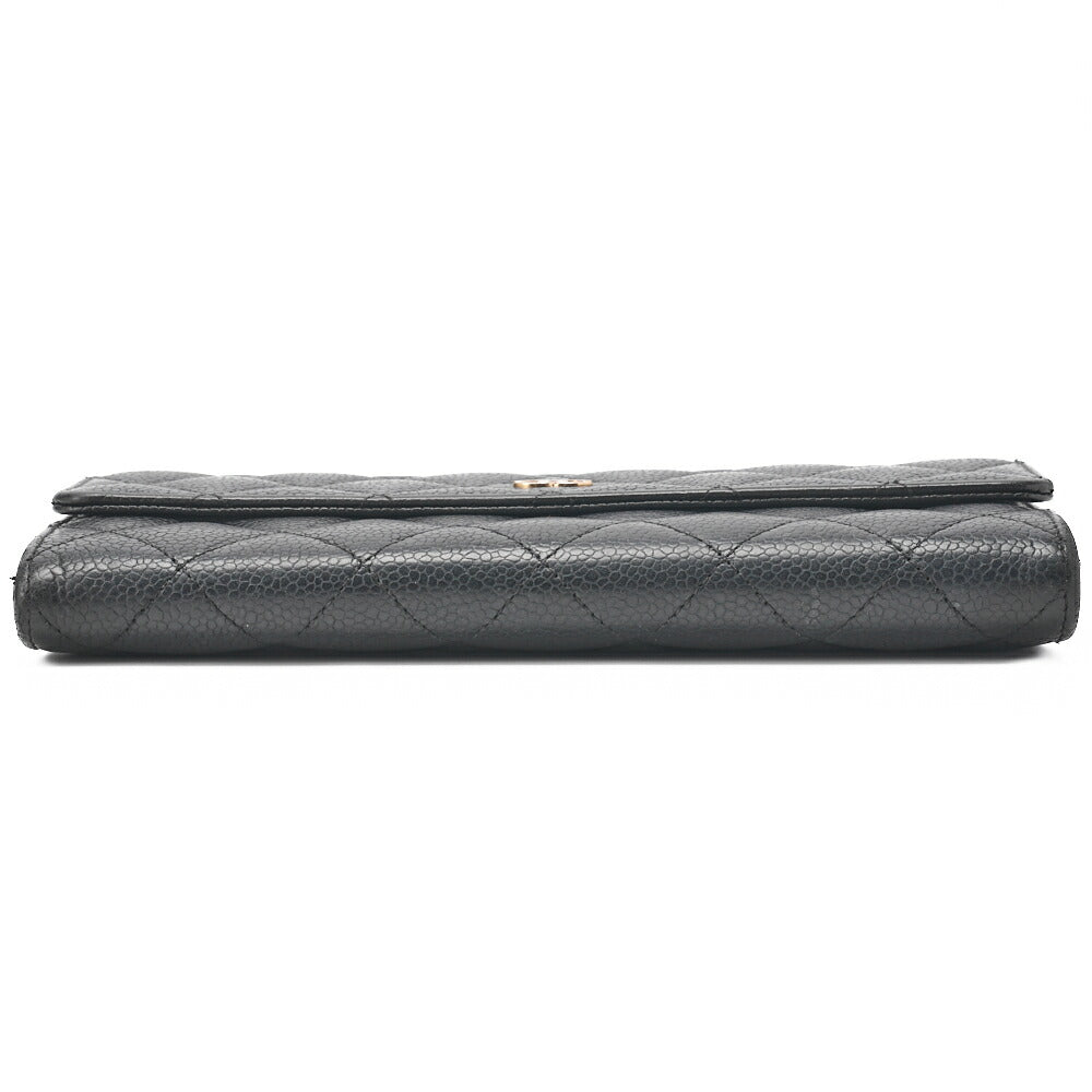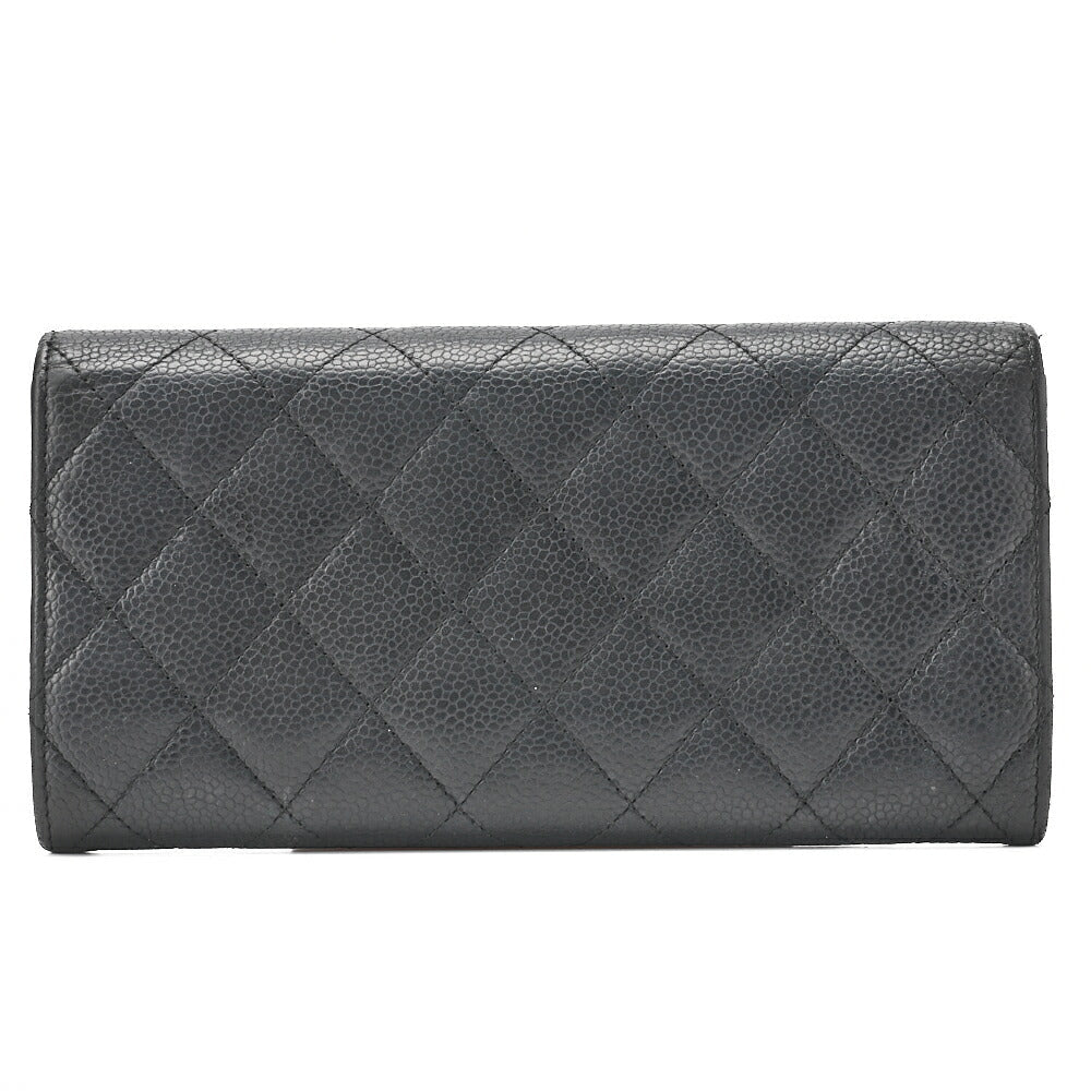 Pre-Owned Round Long Wallet, Matelasse, Caviar Skin, Black, Gold-Tone Hardware, Pre-Owned