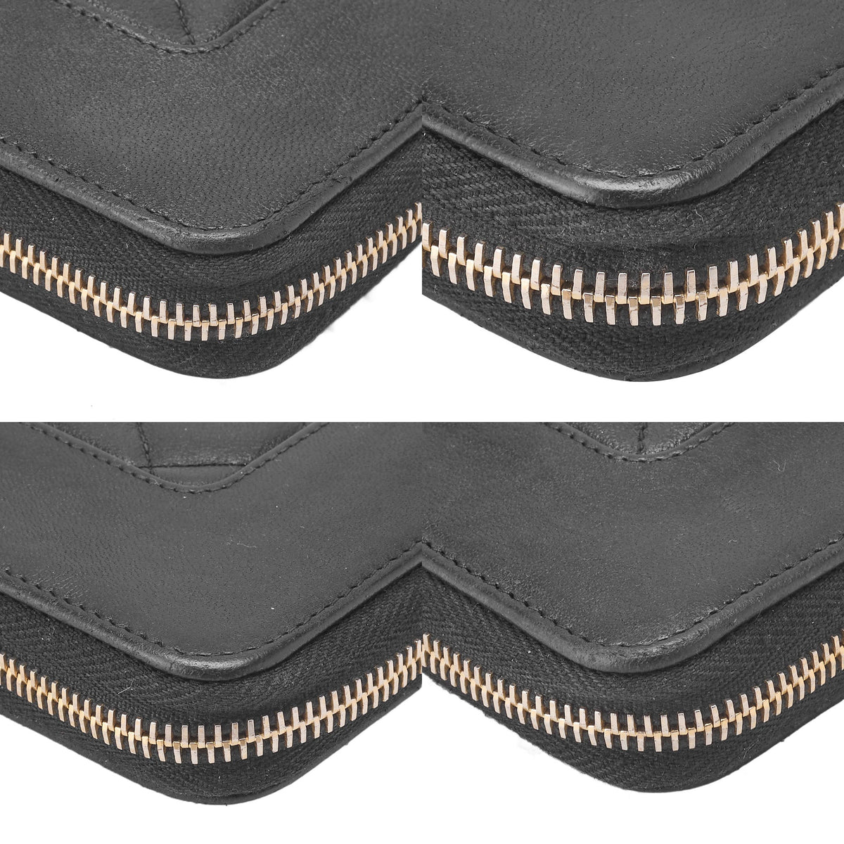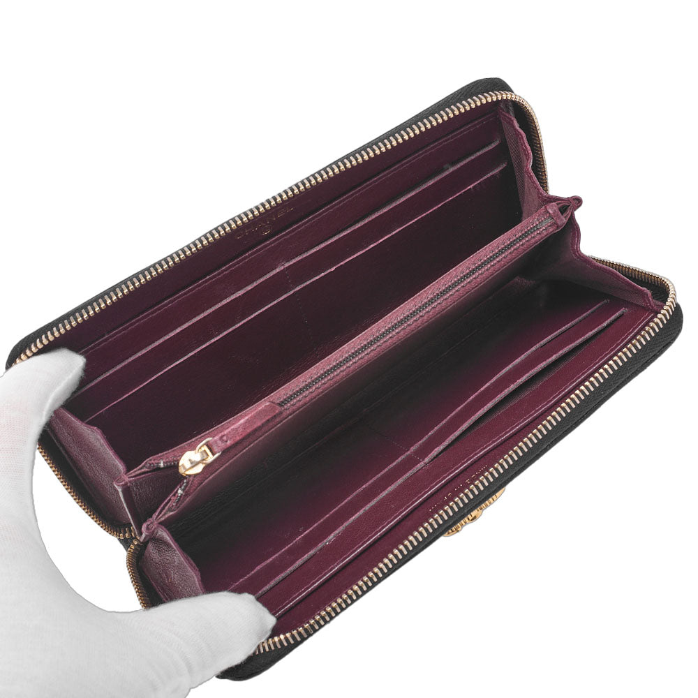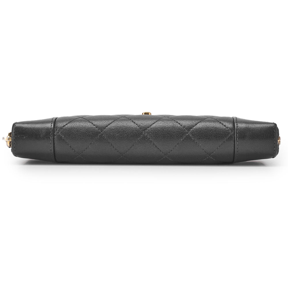 Pre-Owned Round Long Wallet Matelasse Lambskin Black Gold-Tone Hardware Pre-Owned