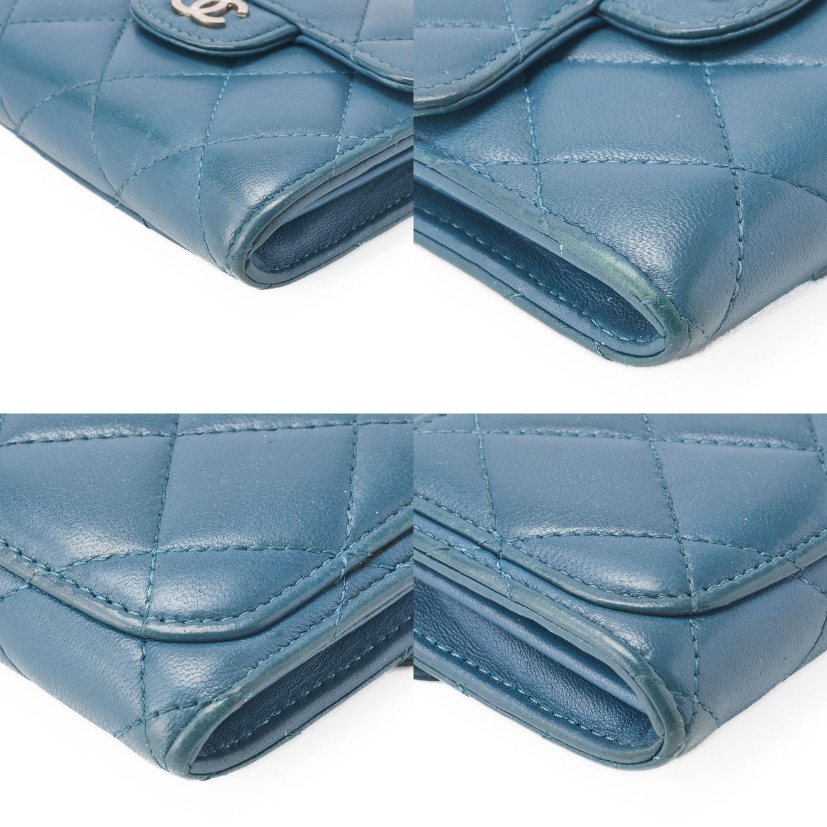 Pre-Owned Compact Wallet, Matelasse, Caviar Skin, Blue, Gold-Tone Hardware, Pre-Owned