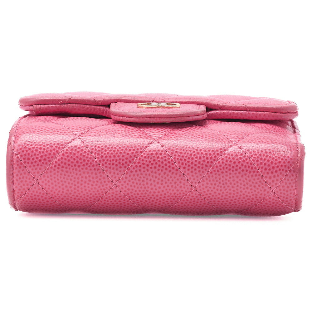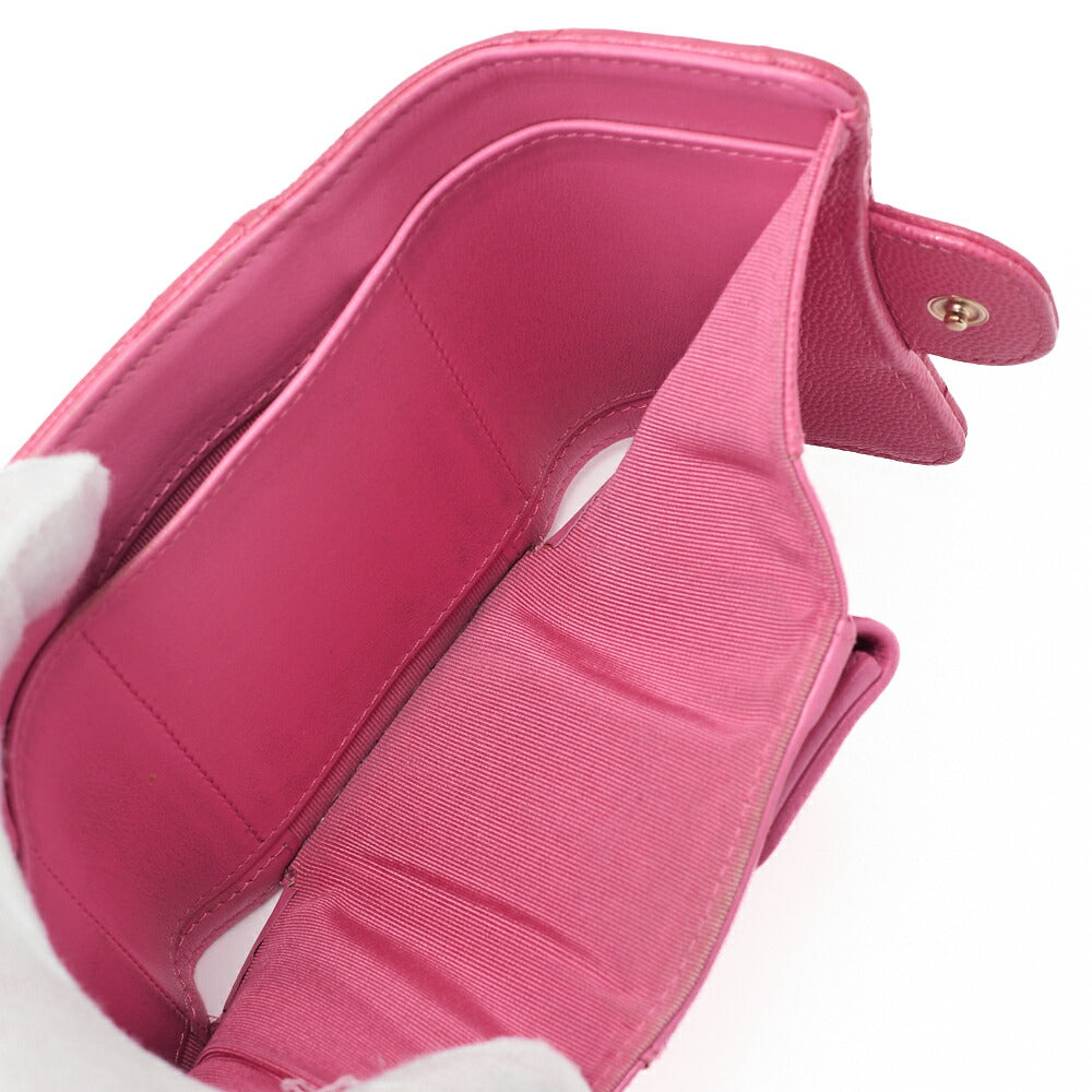 Pre-Owned Tri-Fold Compact Wallet, Matelasse, Caviar Skin, Pink, Gold-Tone Hardware, Pre-Owned