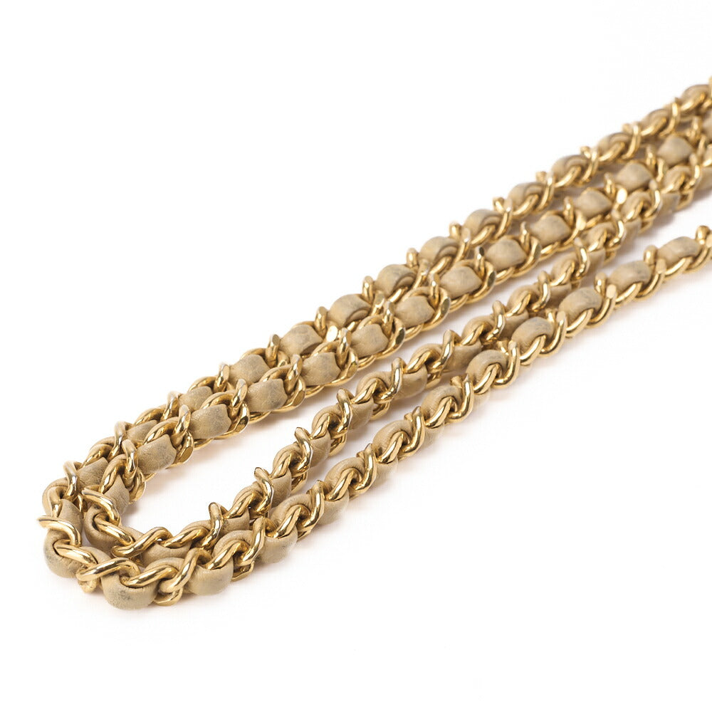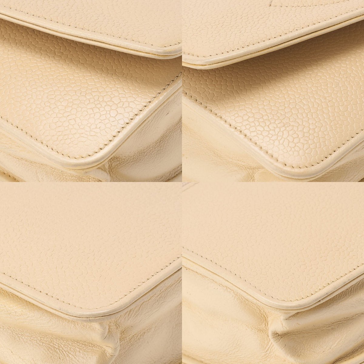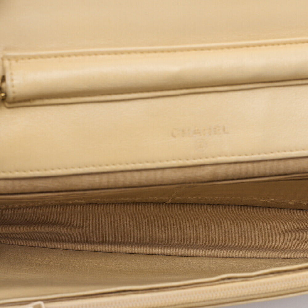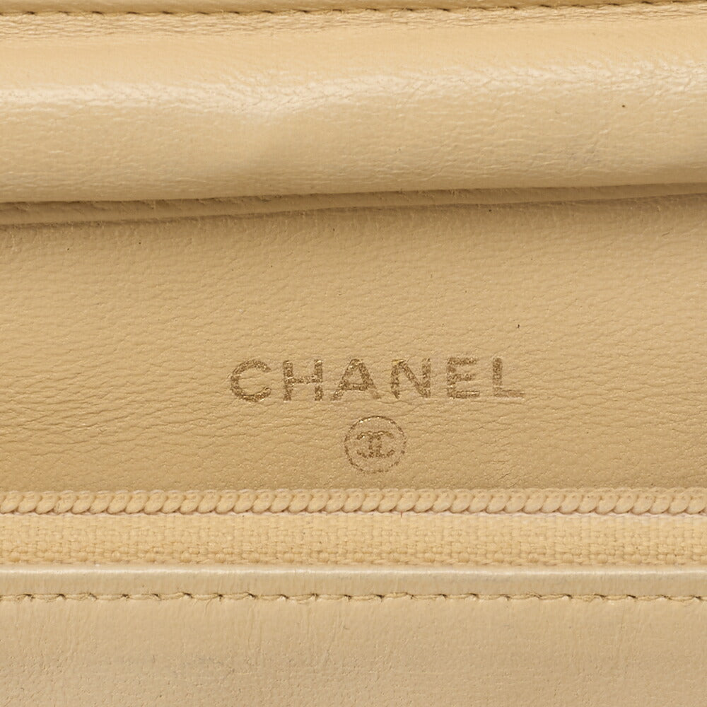 Pre-Owned Shoulder Bag Chain Wallet Caviar Skin Beige Gold-Tone Hardware Pre-Owned