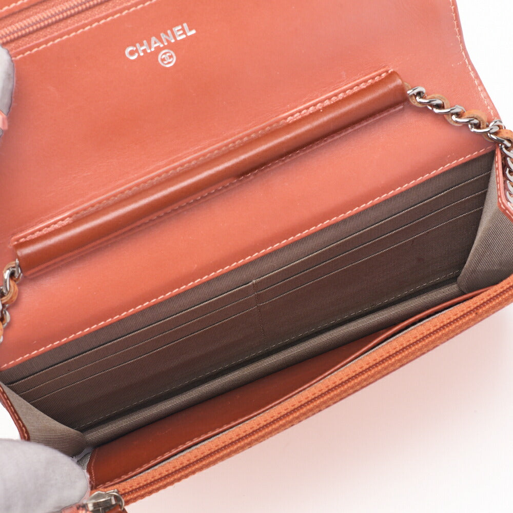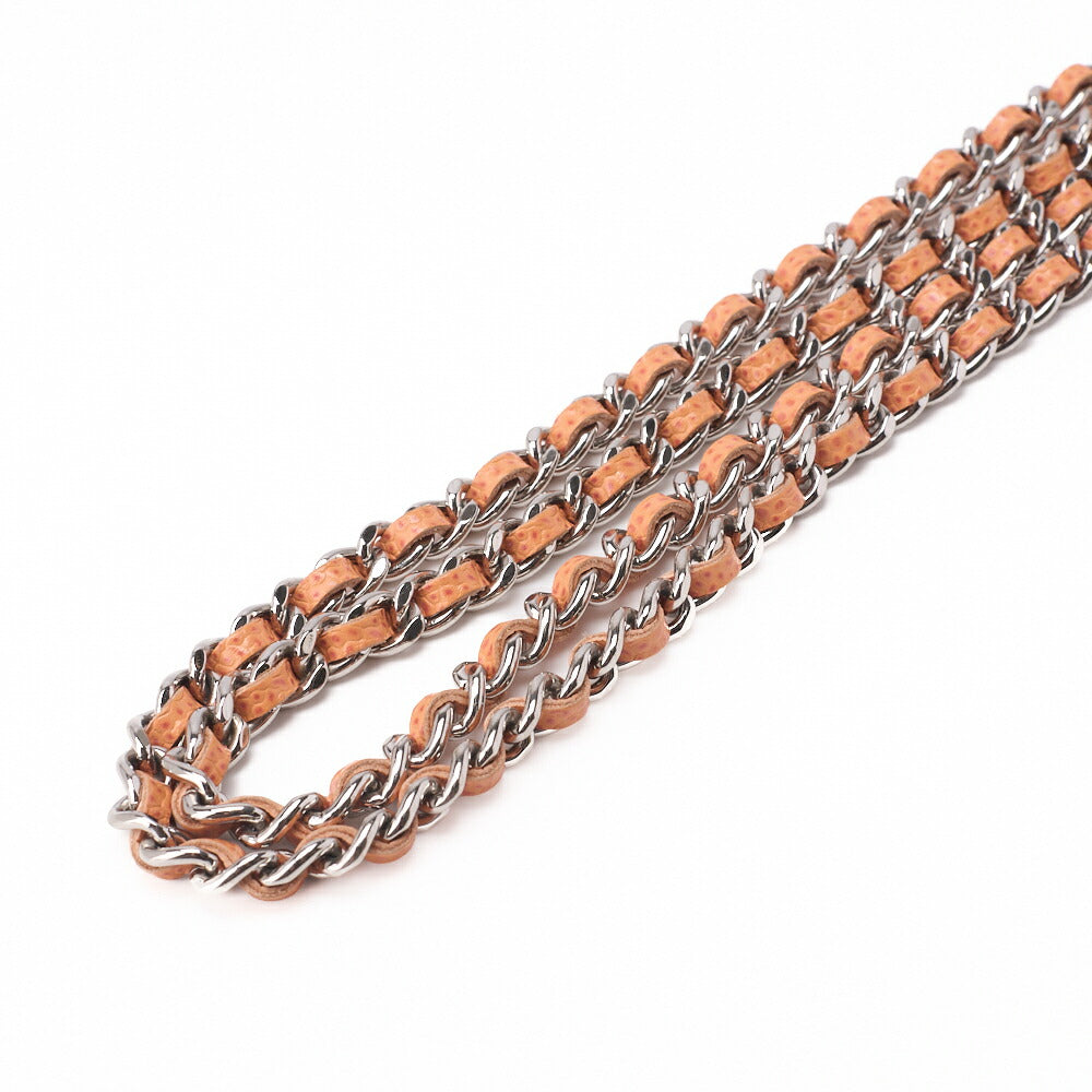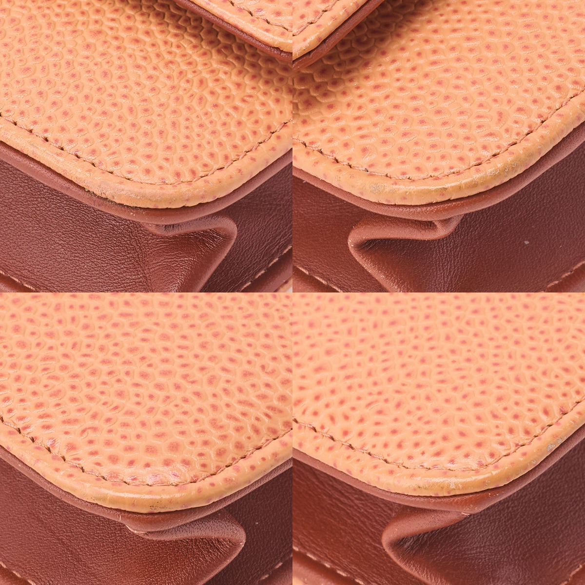 Pre-Owned Shoulder Bag Chain Wallet Caviar Skin Salmon Orange Silver-Tone Hardware Pre-Owned