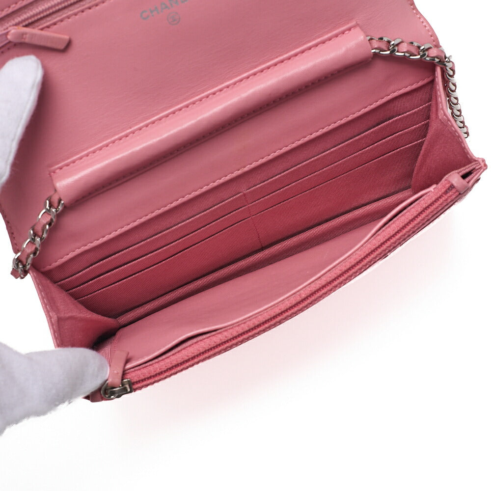 Pre-Owned Shoulder Bag Chain Wallet Lambskin Pink Gold-Tone Hardware, Pre-Owned