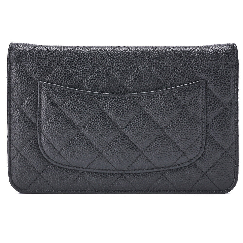 Pre-Owned Chain Wallet Matelasse Caviar Leather Black Silver-Tone Hardware Pre-Owned