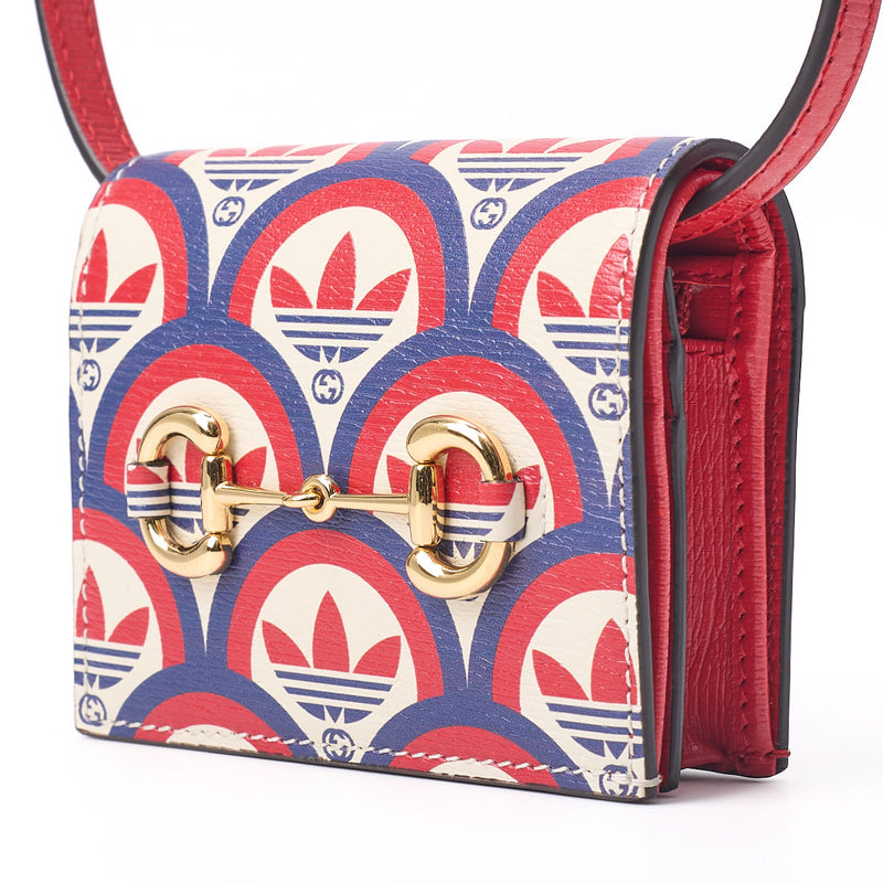 Pre-Owned Adidas Horsebit Shoulder Wallet, Leather, Red, Gold-Tone Hardware, Pre-Owned