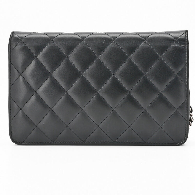 Pre-Owned Chain Wallet Matelasse Lambskin Black Gold-Tone Hardware Pre-Owned
