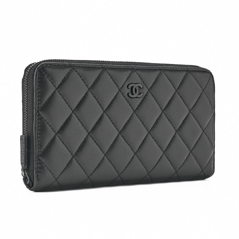 Pre-Owned Long Wallet Matelasse Lambskin Black Gold-Tone Hardware Pre-Owned