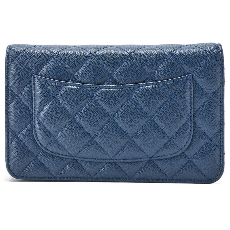 Pre-Owned Chain Wallet, Matelasse, Caviar Skin, Blue, Gold-Tone Hardware, Pre-Owned