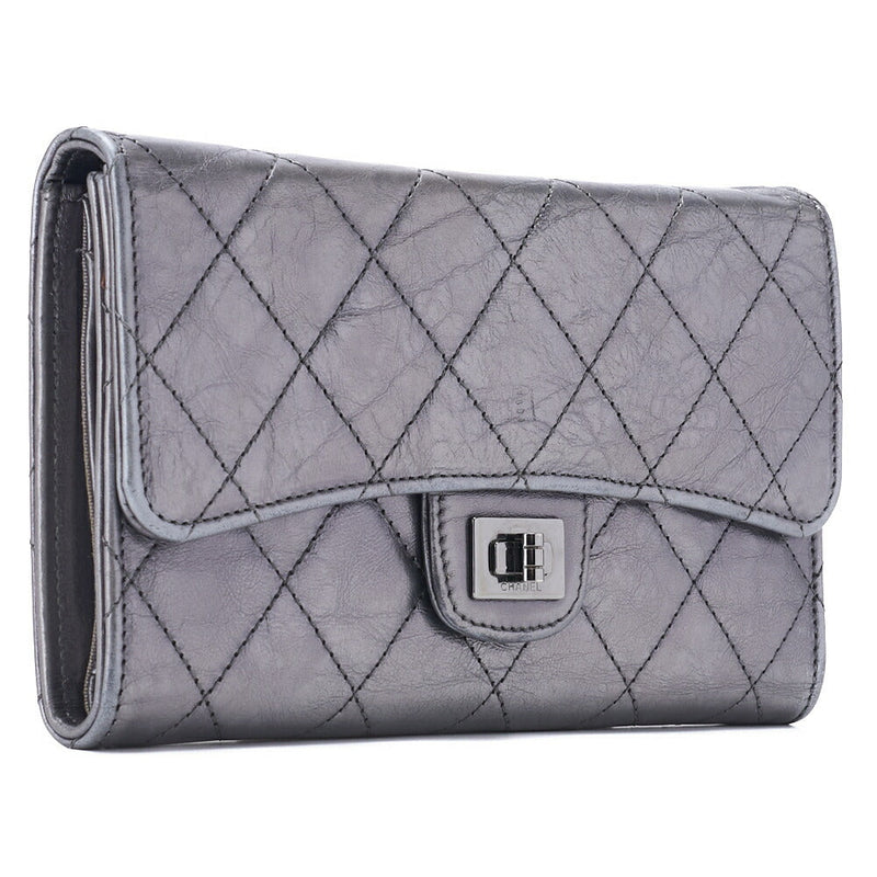 Pre-Owned Tri-Fold Wallet, Matelasse, Vintage Calf, Silver, Silver-Tone Hardware, Pre-Owned