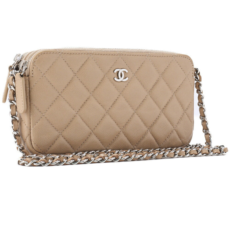 Pre-Owned Shoulder Bag Chain Wallet Matelasse Caviar Skin Beige Silver-Tone Hardware Pre-Owned