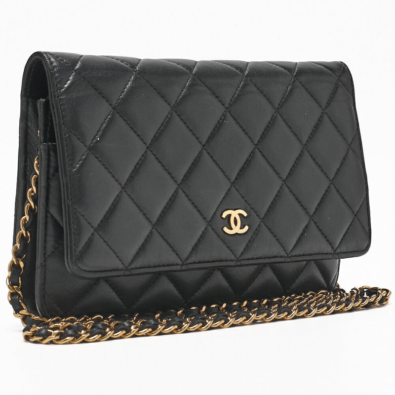 Pre-Owned Chain Wallet Matelasse Lambskin Black Gold-Tone Hardware Pre-Owned
