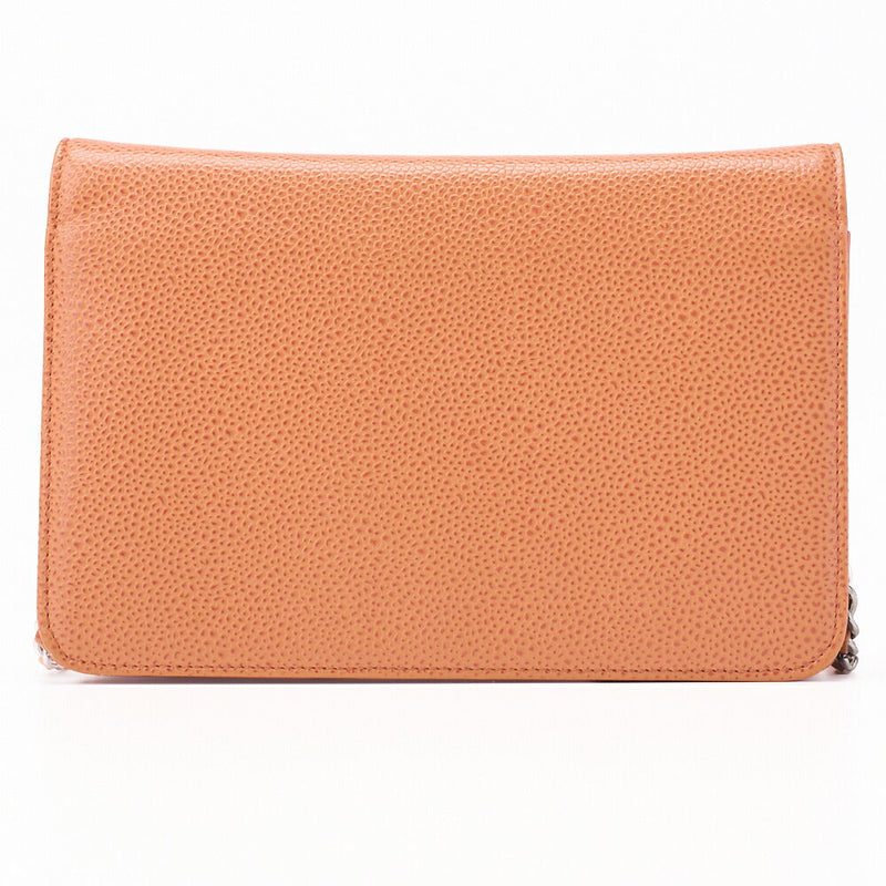 Pre-Owned Shoulder Bag Chain Wallet Caviar Skin Salmon Orange Silver-Tone Hardware Pre-Owned