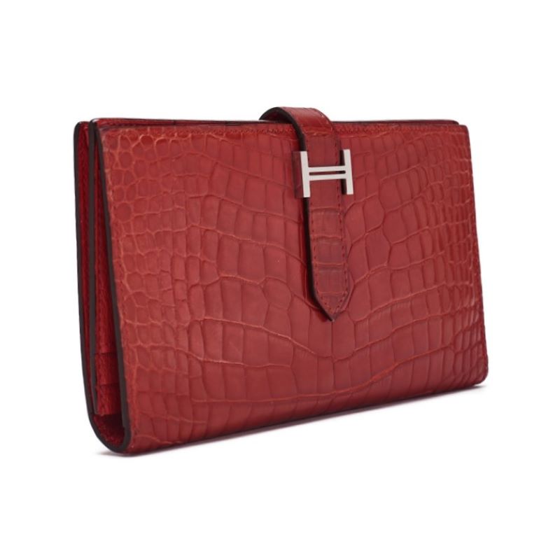 Pre-Owned Bearn Soufflet 2 Fold Long Wallet Alligator Blaze Raise Silver-Tone Hardware Pre-Owned