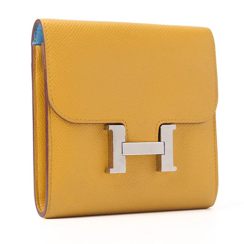 Pre-Owned Constance Compact Two-Fold Wallet Vaux Epson Etoupe Gold-Tone Hardware Pre-Owned
