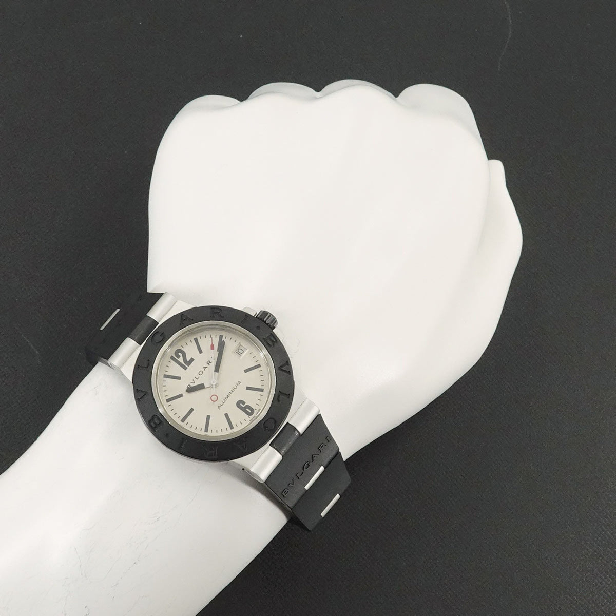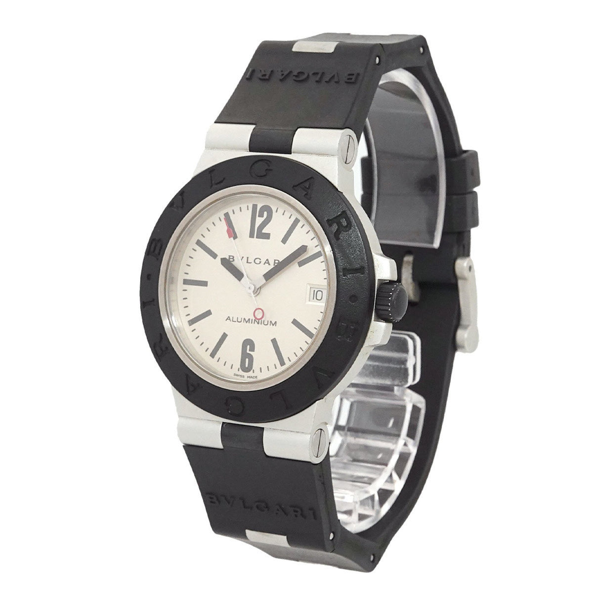 Pre-Owned BVLGARI Aluminium AL38A Men's Watch Date Silver Rubber Automatic Self-Winding