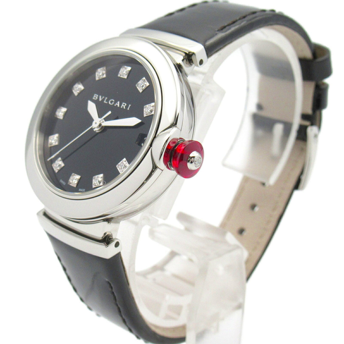 Pre-Owned BVLGARI Lucea Watch Stainless Steel Leather Strap Women's Black 103503