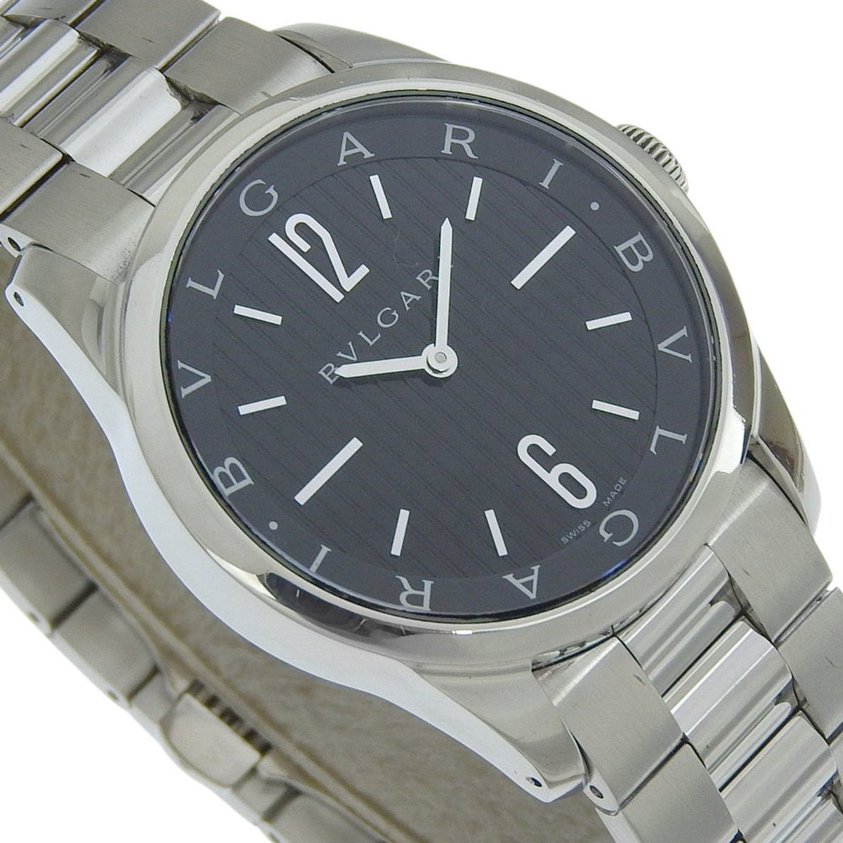 Pre-Owned BVLGARI Solo Tempo Watch ST37S Stainless Steel Quartz Analog Display Black Dial Men's