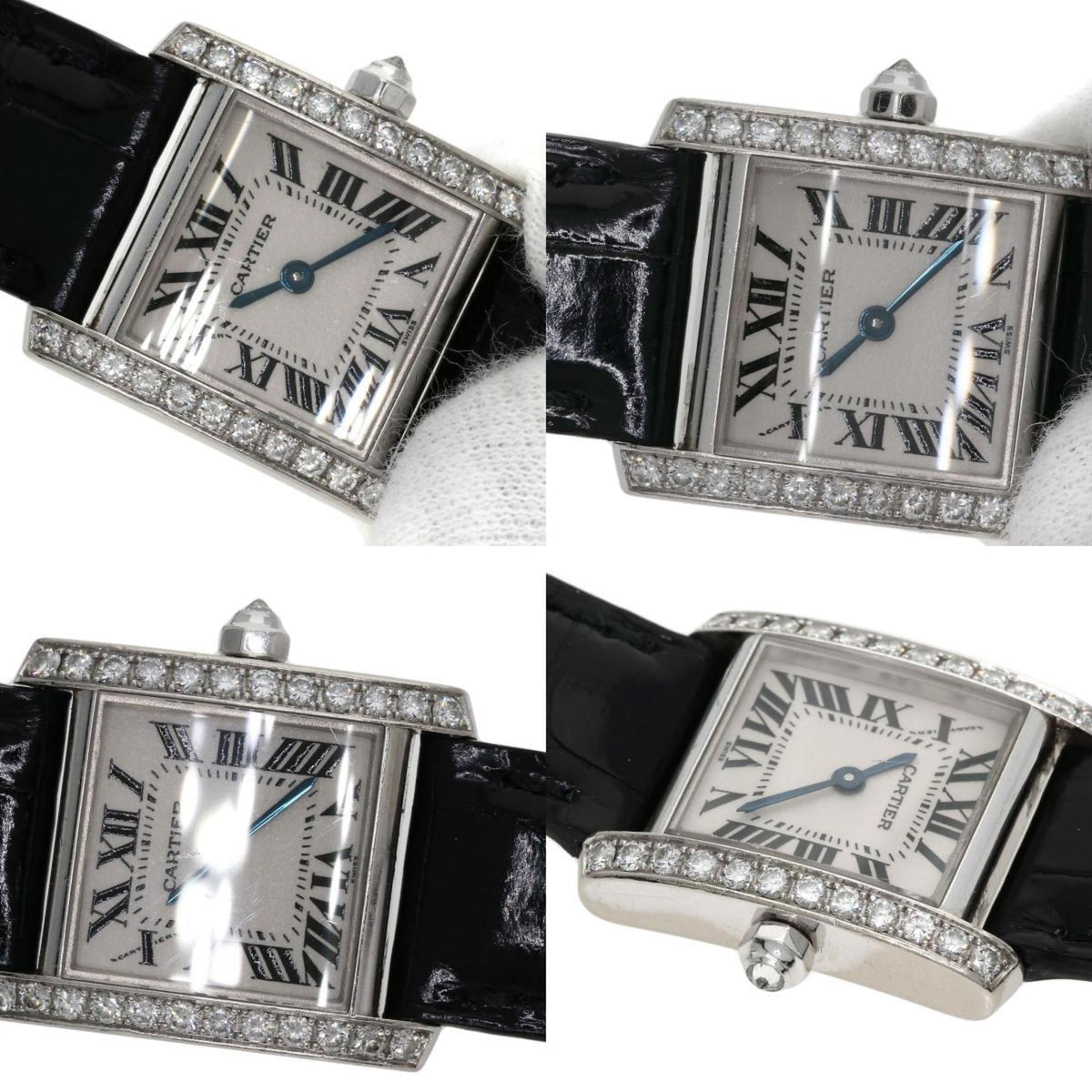 Pre-Owned Cartier WE1002S3 Tank Fran?aise SM Watch with Genuine Diamond Bezel, 18K White Gold/Leather, Women's