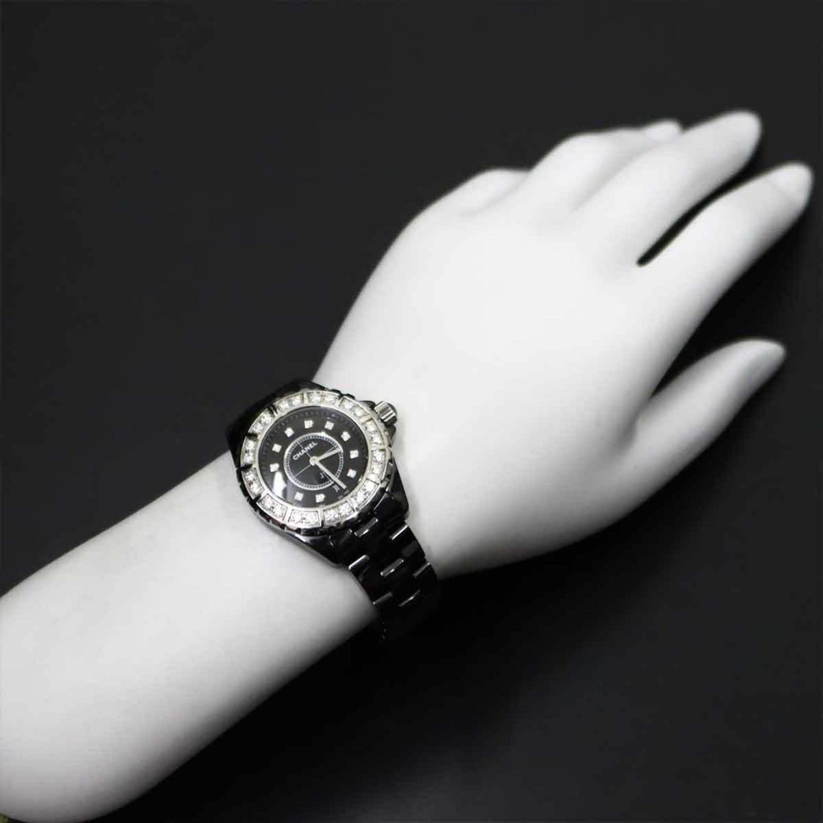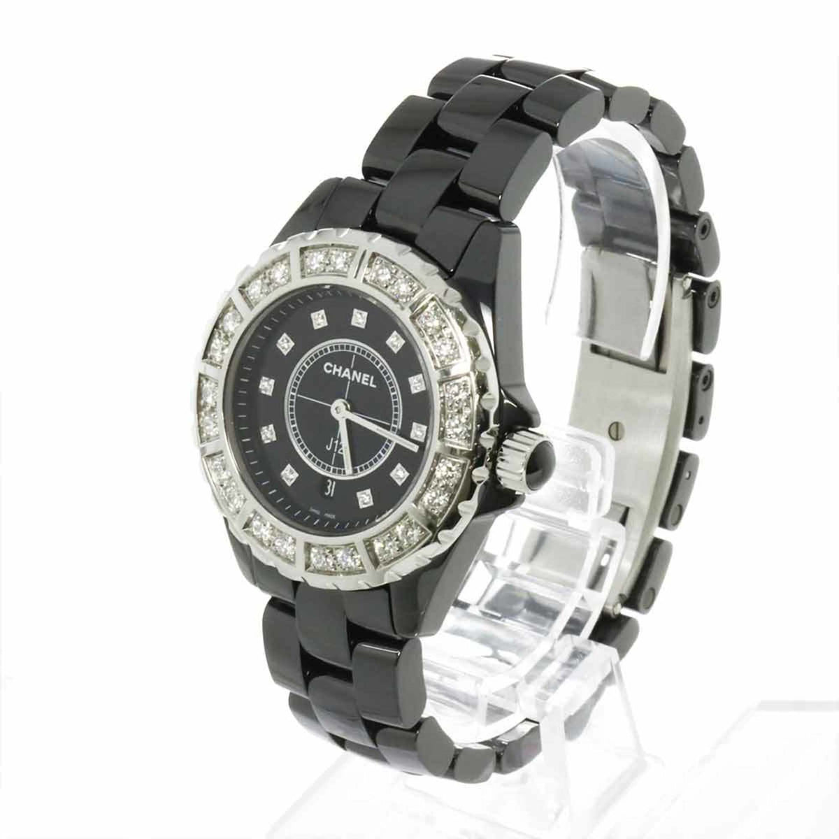Pre-Owned CHANEL J12 33mm H2427 Large Diamond Bezel Women's Watch with 11 Diamonds, Date Display, Black Ceramic Quartz Movement