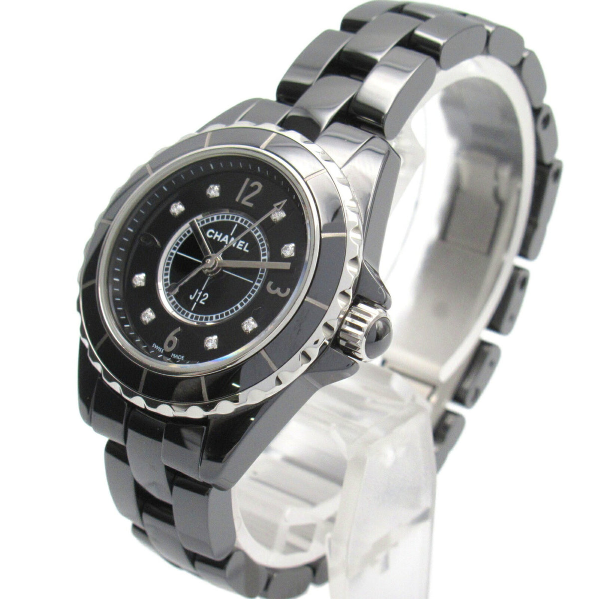 Pre-Owned CHANEL J12 8P Diamond Watch, Ceramic, Women's, Black, H2569