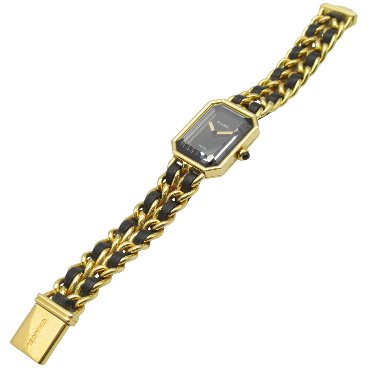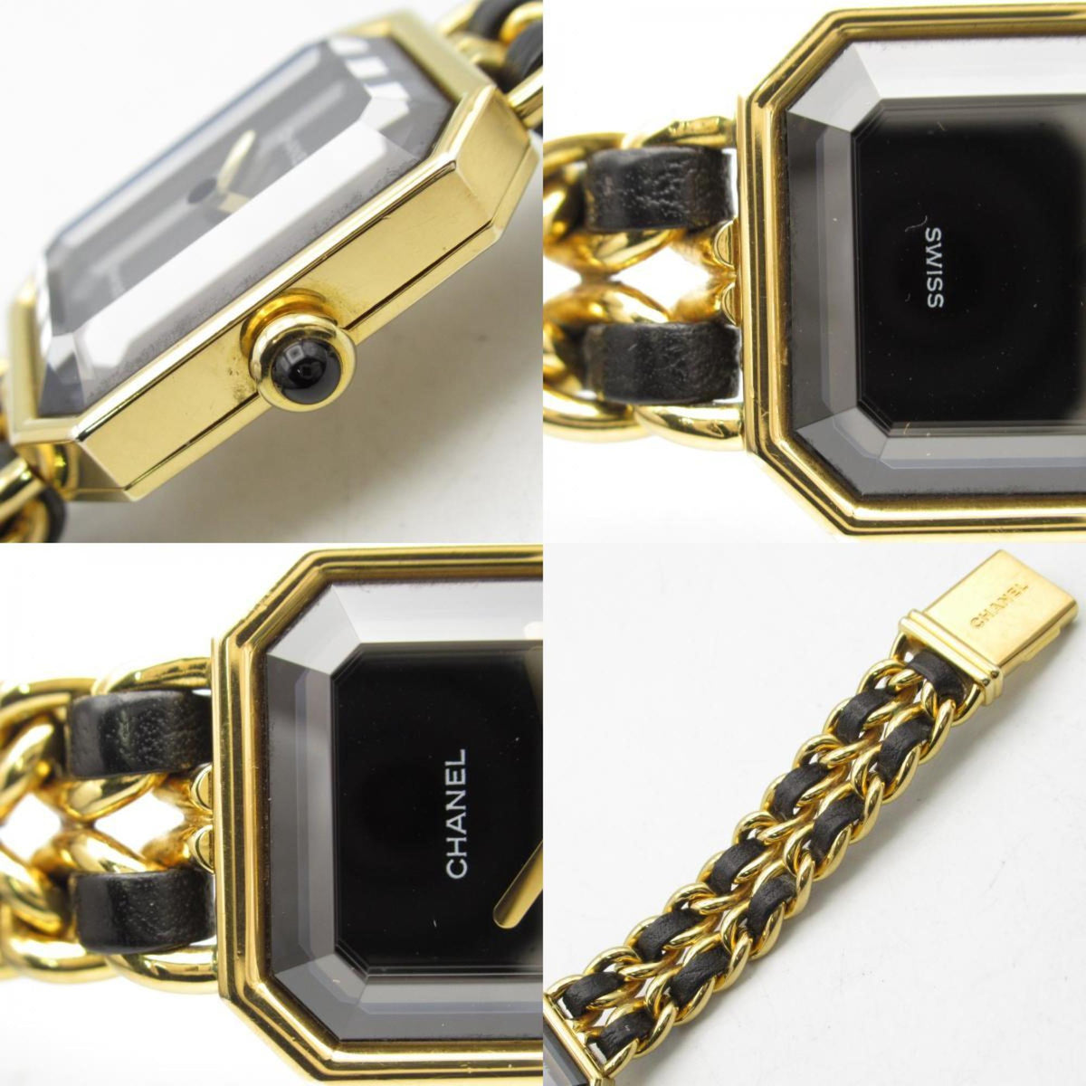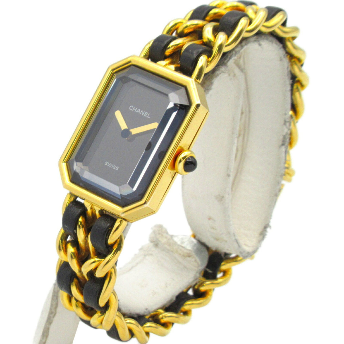 Pre-Owned CHANEL Premiere M Watch GP (Gold Plated) Leather Ladies Black H0001