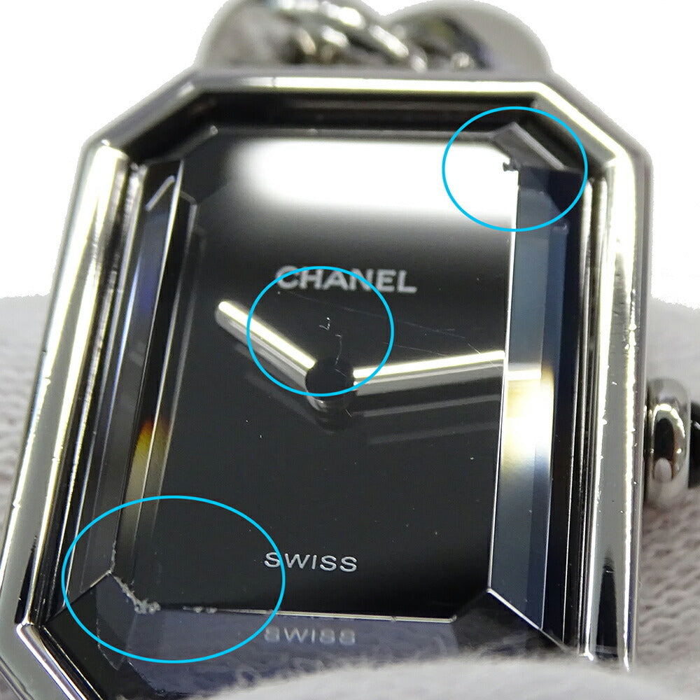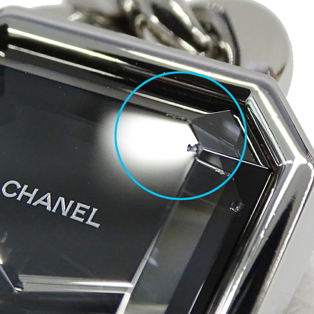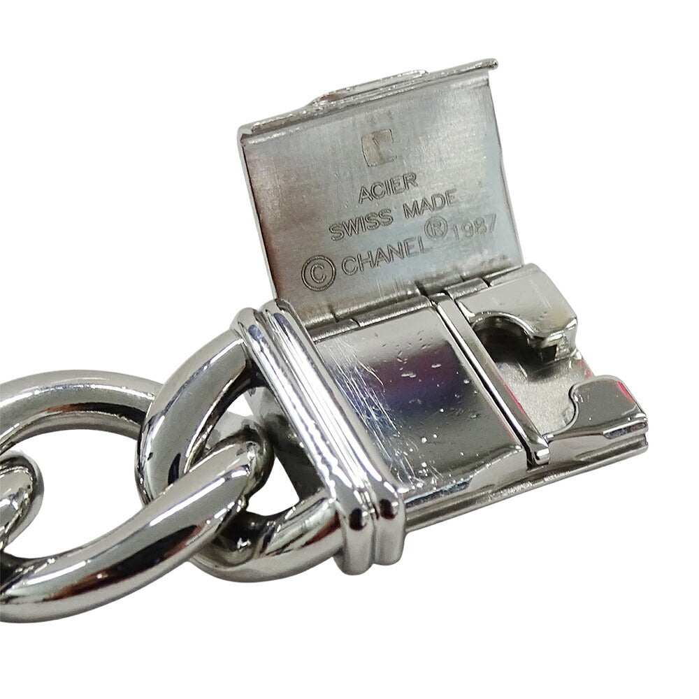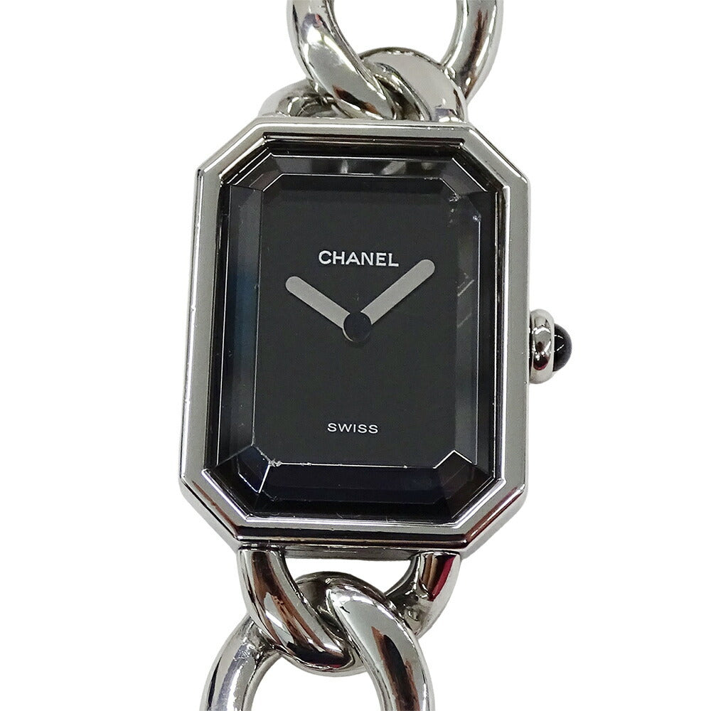 Pre-Owned CHANEL Women's Premiere Watch, Large, Quartz, Stainless Steel, H0452, Silver/Black, Square Chain, Polished
