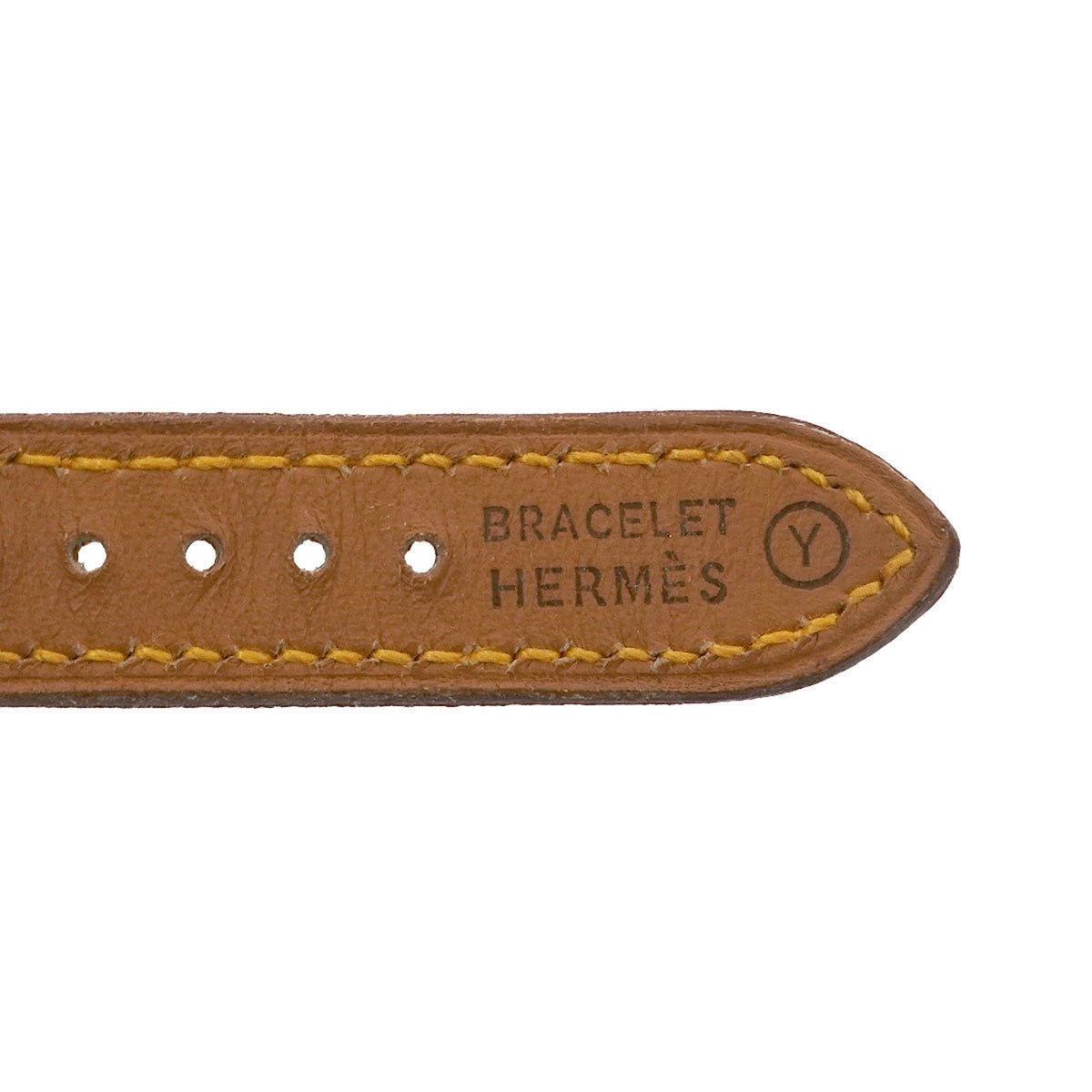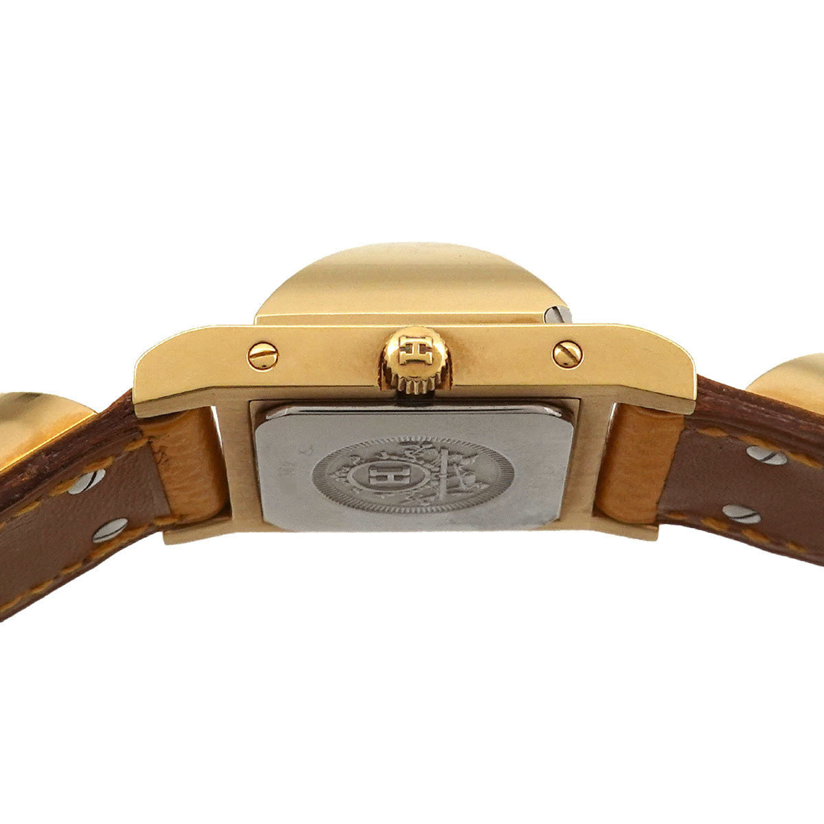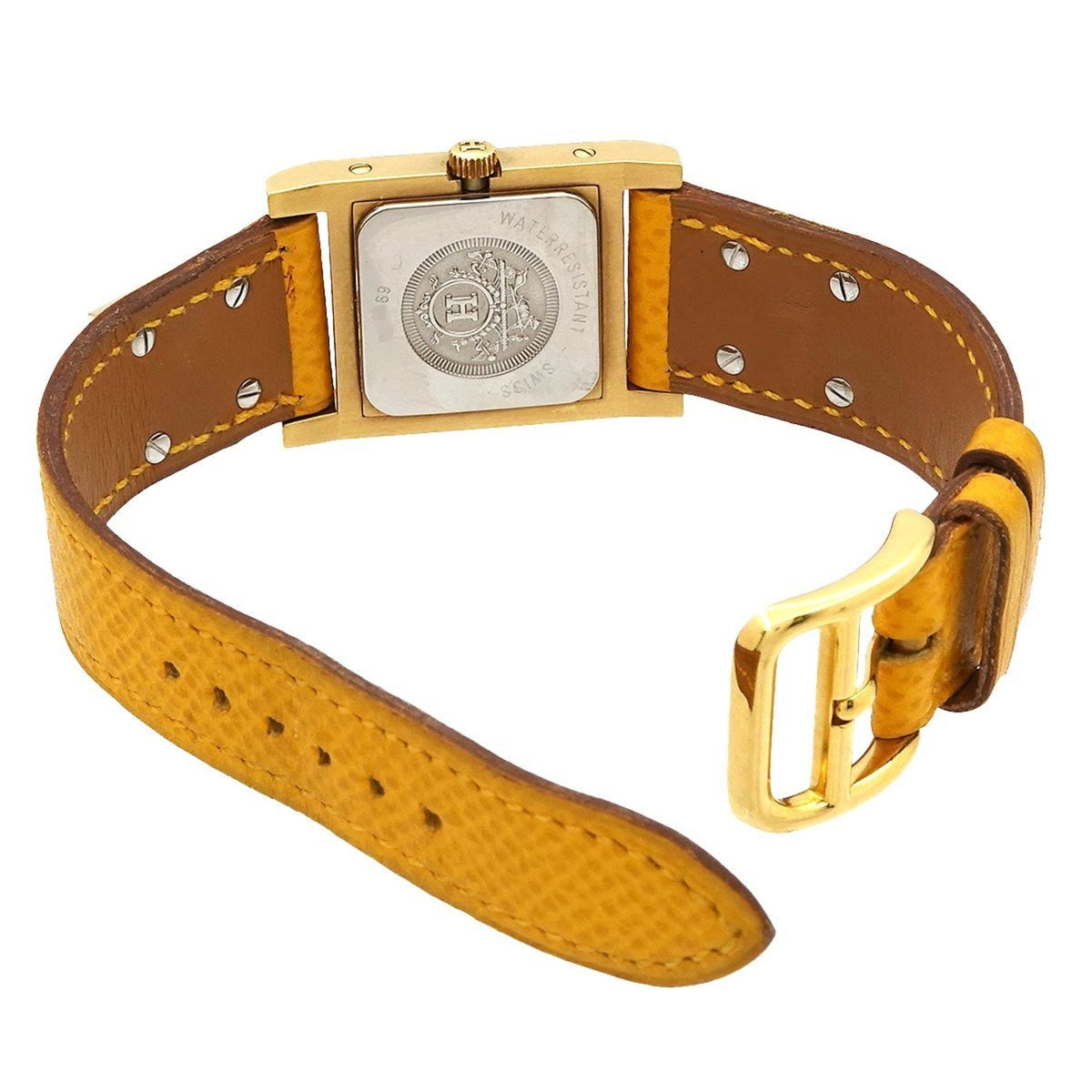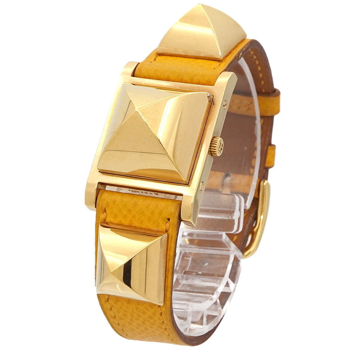 Pre-Owned Herm?s Medor Women's Pyramid Gold Stud Watch in White and Yellow Leather with Quartz Movement