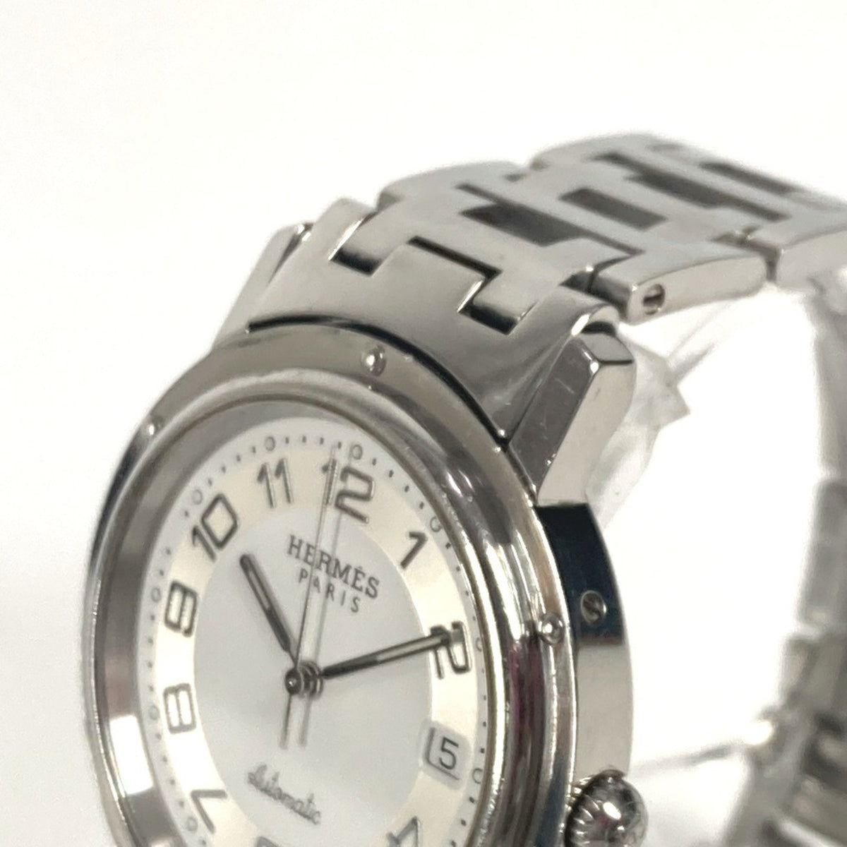 Pre-Owned HERMES CL1.810 Clipper Date Men's Watch Stainless Steel Silver