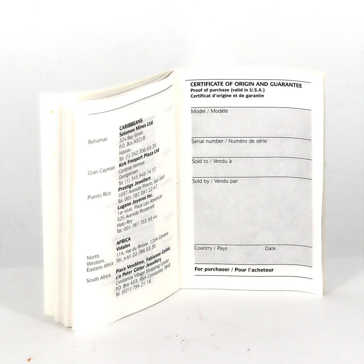 Most new watches are delivered with an official manufacturer warranty certificate. For pre-owned watches, warranty details if available are shown in the product images and listed in the product description.