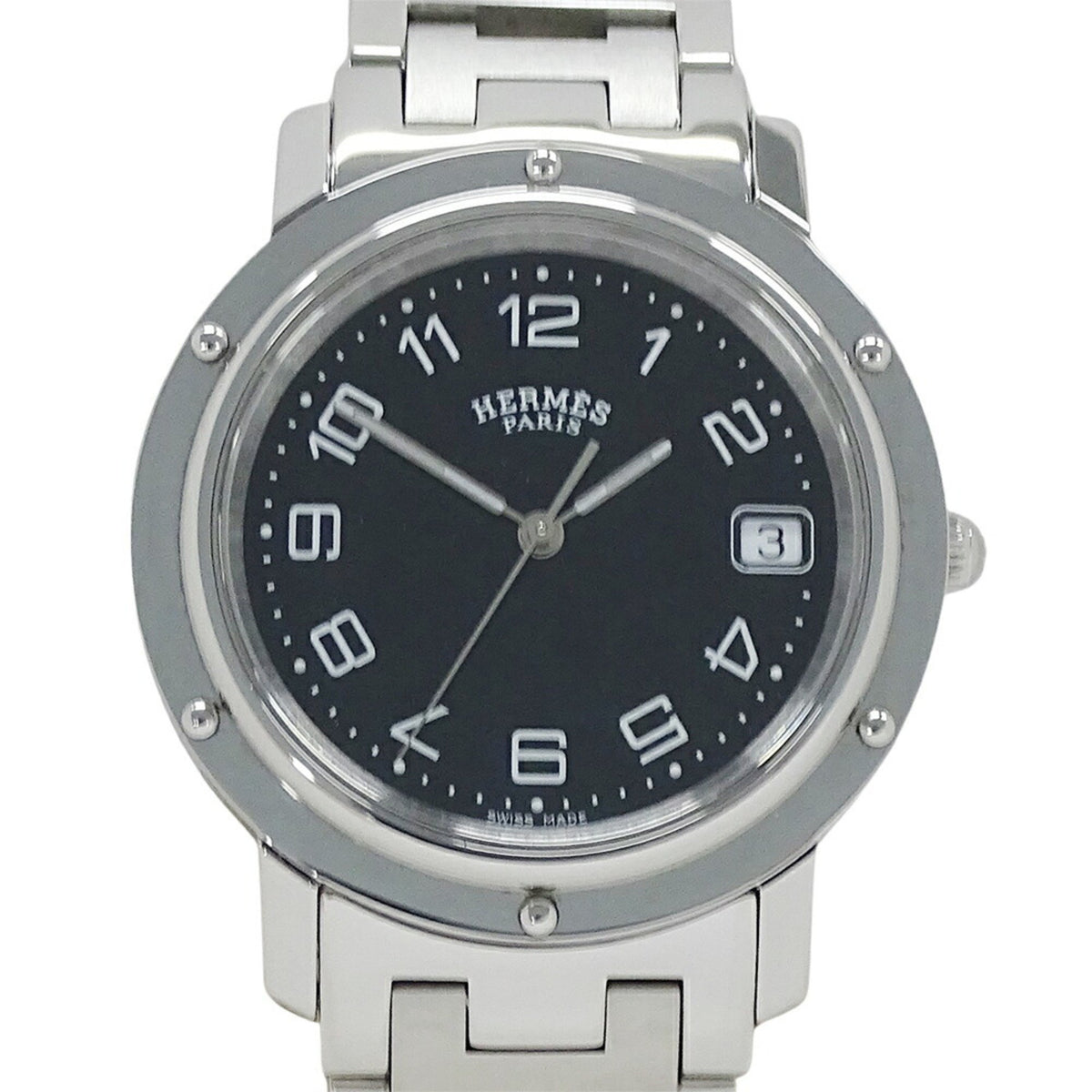 Pre-Owned Hermes HERMES Watch Men's Clipper Date Quartz Stainless Steel SS CL6.710 Silver Black Polished