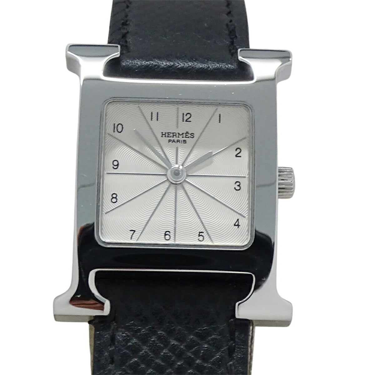 Pre-Owned Hermes HERMES Wristwatch Women's H Watch Quartz Stainless Steel SS Leather HH1.210 Silver Black ?B Polished