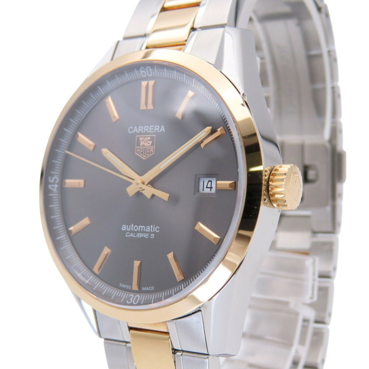 Pre-Owned TAG Heuer Carrera Caliper 5 WV215F 18KGP/SS Automatic Watch Grey 0173TAG HEUER Men's