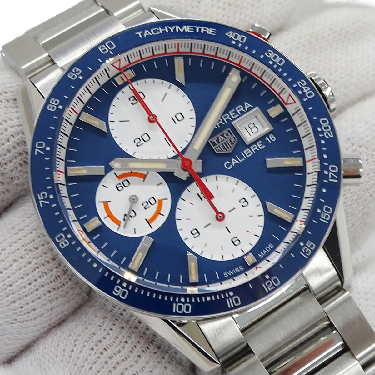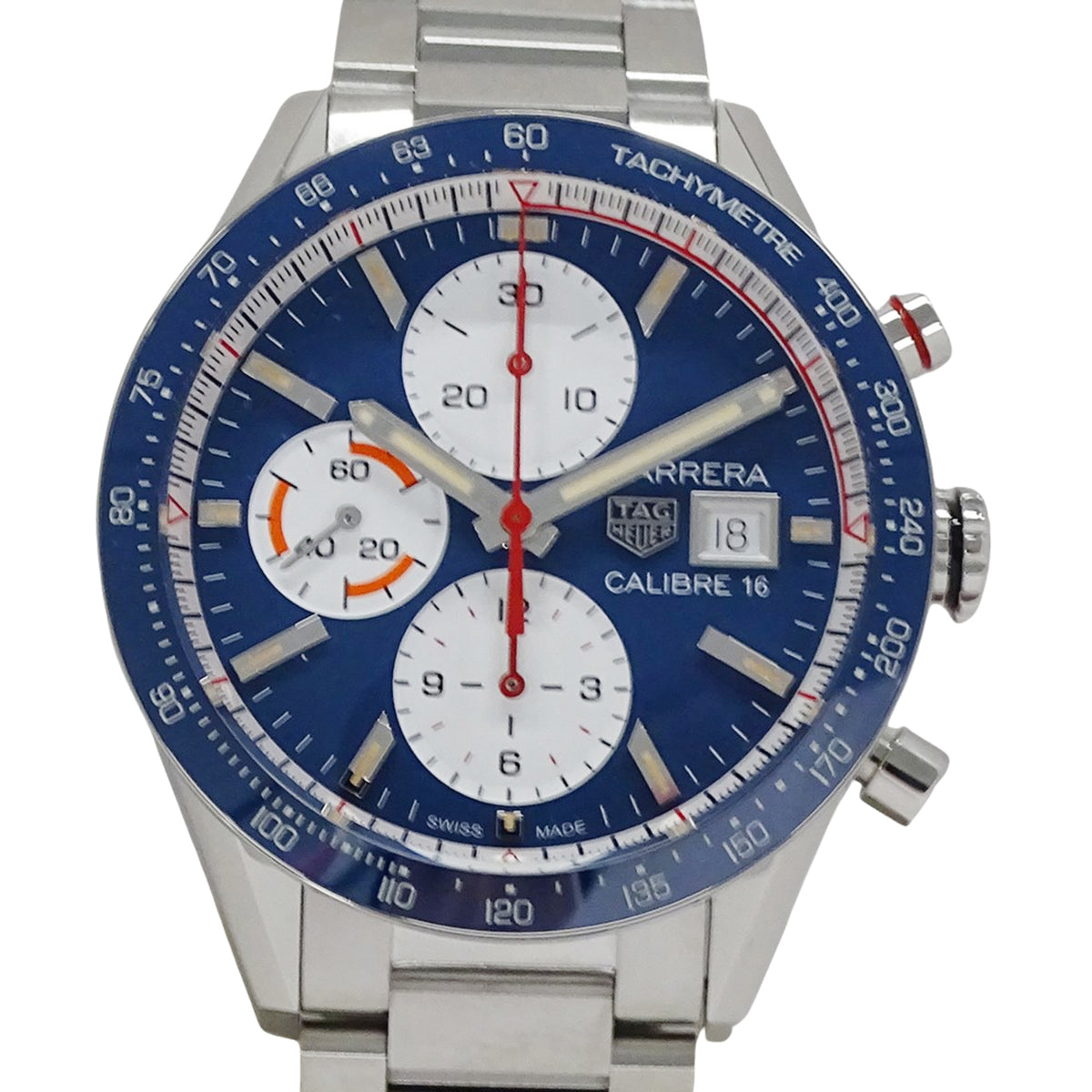 Pre-Owned TAG Heuer Carrera CV201AR-1 BA0715 Men's Watch, Caliber 16 Chronograph Automatic, Stainless Steel, Silver Blue, Polished
