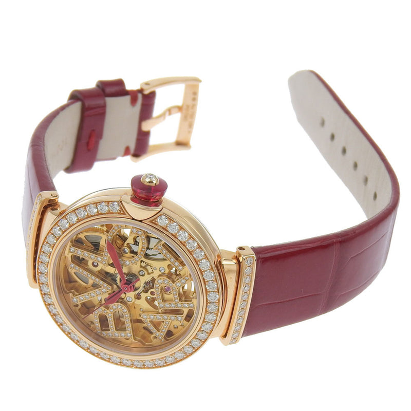 Pre-Owned BVLGARI Lucea 102833 LUP33G Skeleton Dial Bezel/Dial Diamond K18PG/Leather