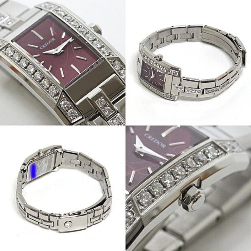 Pre-Owned SEIKO Women's Watch Credor Node 5A70-0AY0 Diamond Bordeaux Dial Quartz