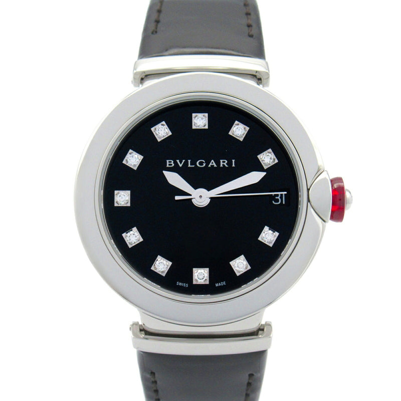 Pre-Owned BVLGARI Lucea Watch Stainless Steel Leather Strap Women's Black 103503