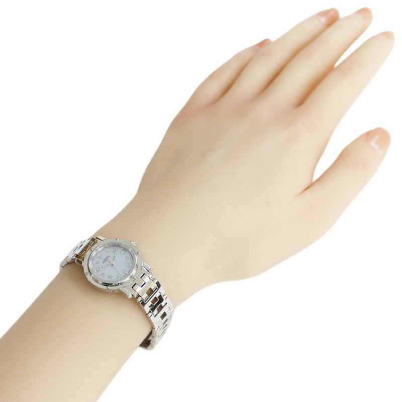 Pre-Owned Hermes HERMES CL4.230 Clipper Nacle Watch Quartz Shell Dial Bezel 12P Diamond Women's ITXY3KRDYLJA