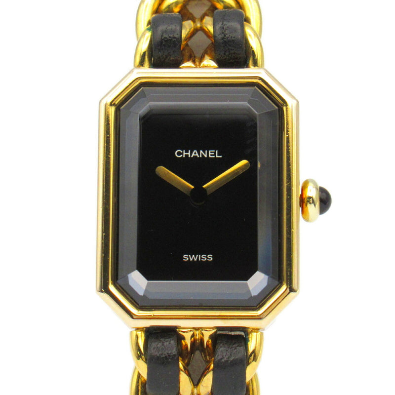 Pre-Owned CHANEL Premiere S Watch GP (Gold Plated) Leather Ladies Black H0001