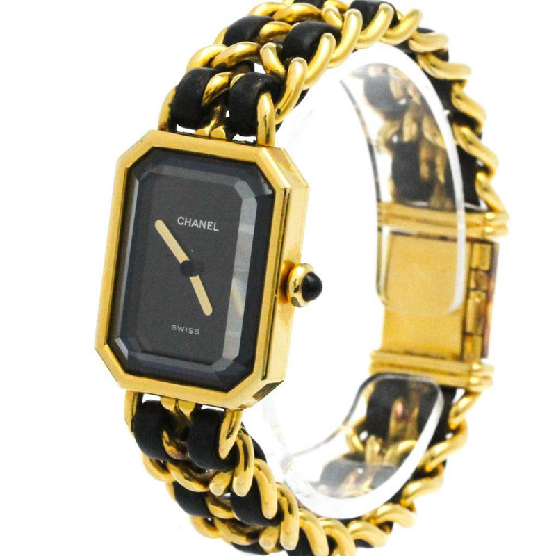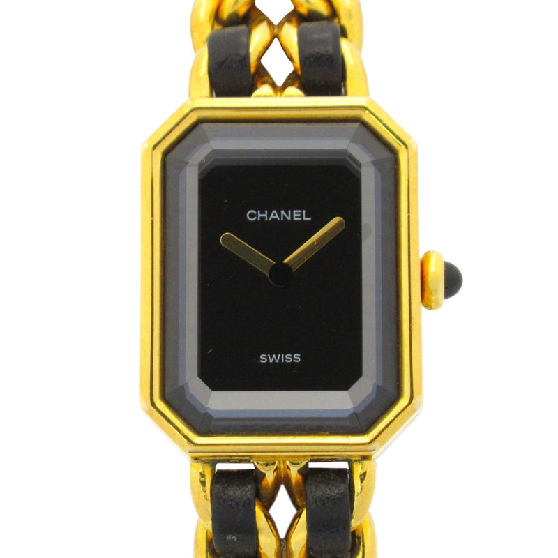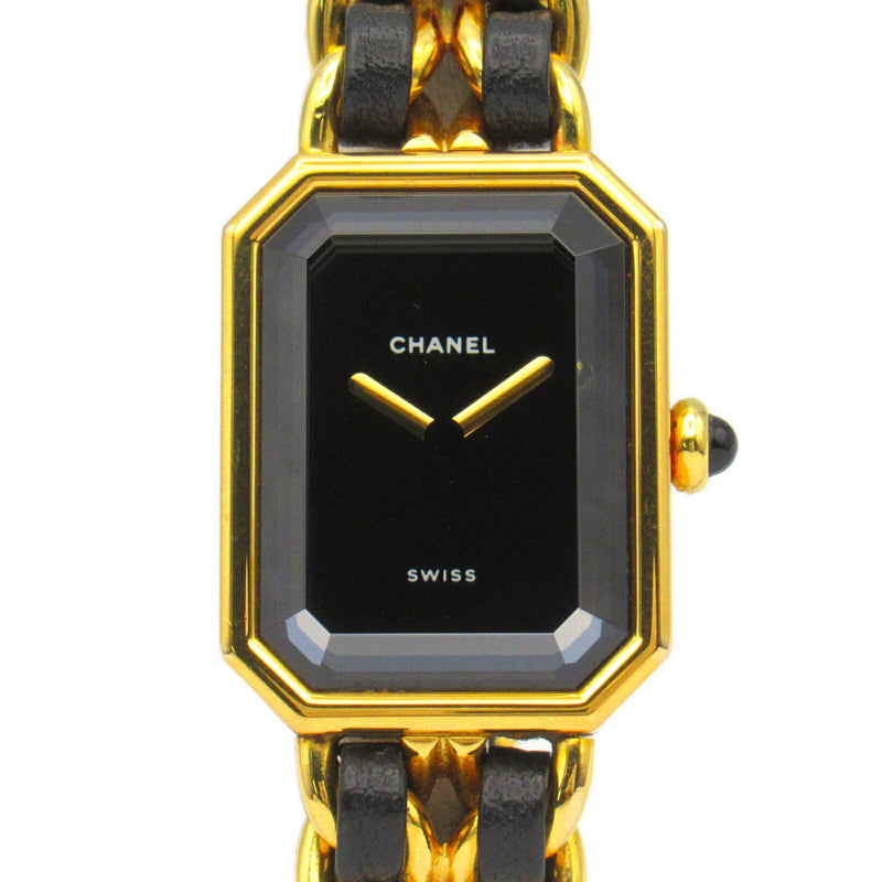 Pre-Owned CHANEL Premiere M Watch GP (Gold Plated) Leather Ladies Black H0001
