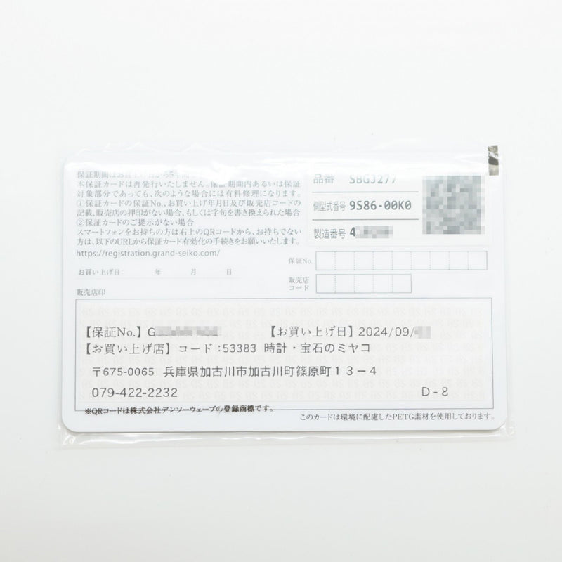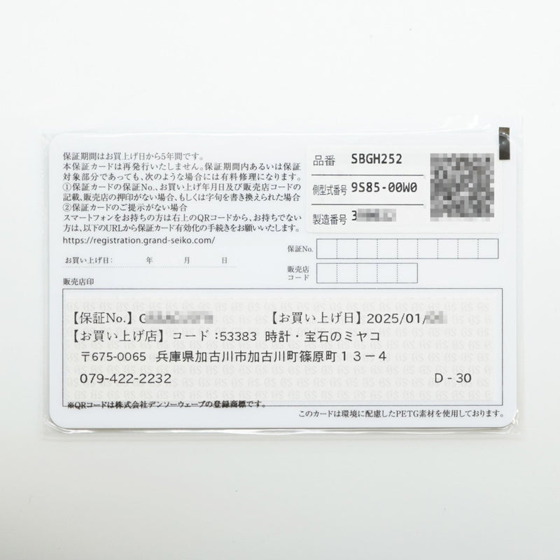 Pre-Owned Seiko Grand 9S85-02D0 Green Dial Men's Watch